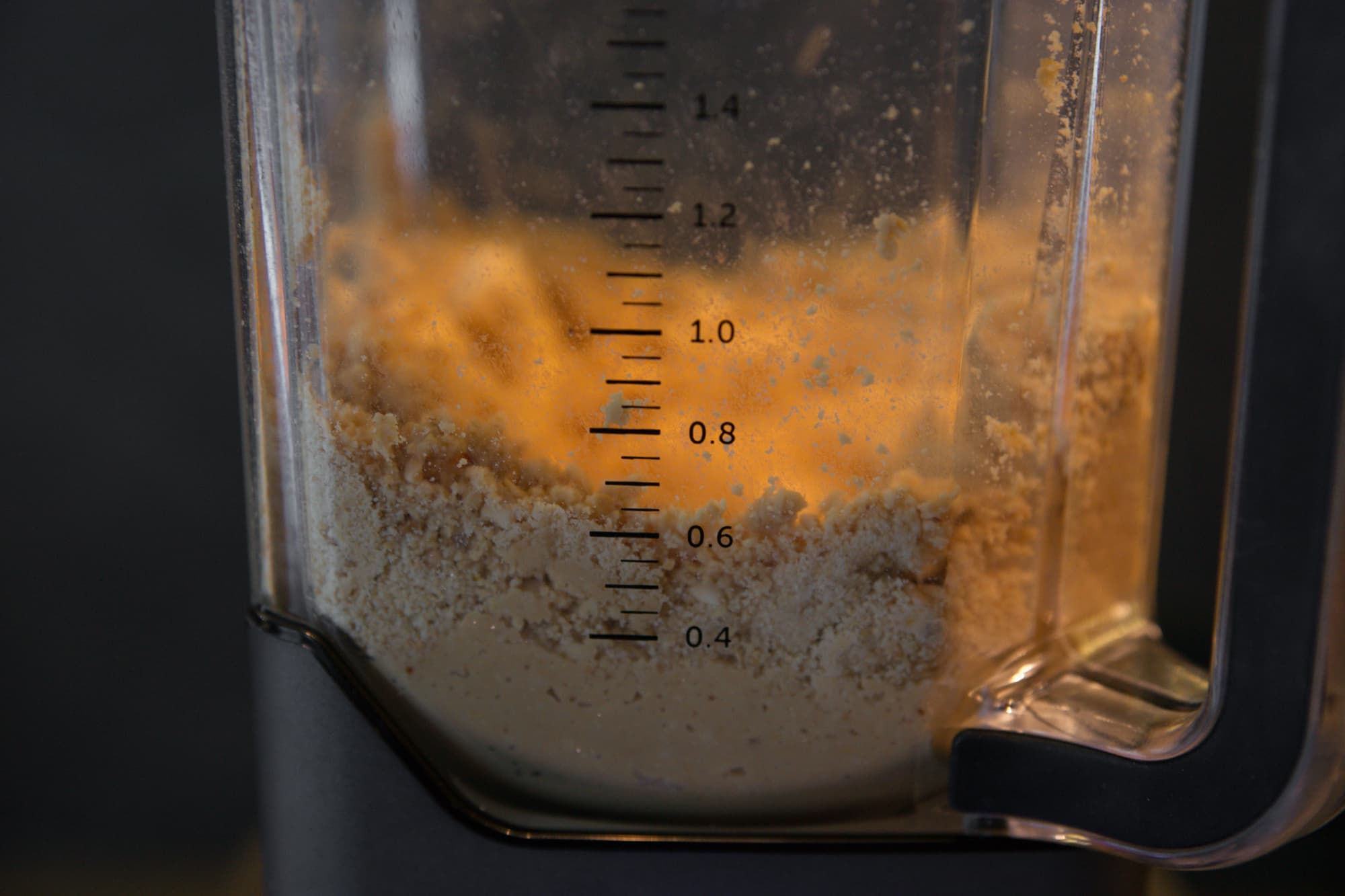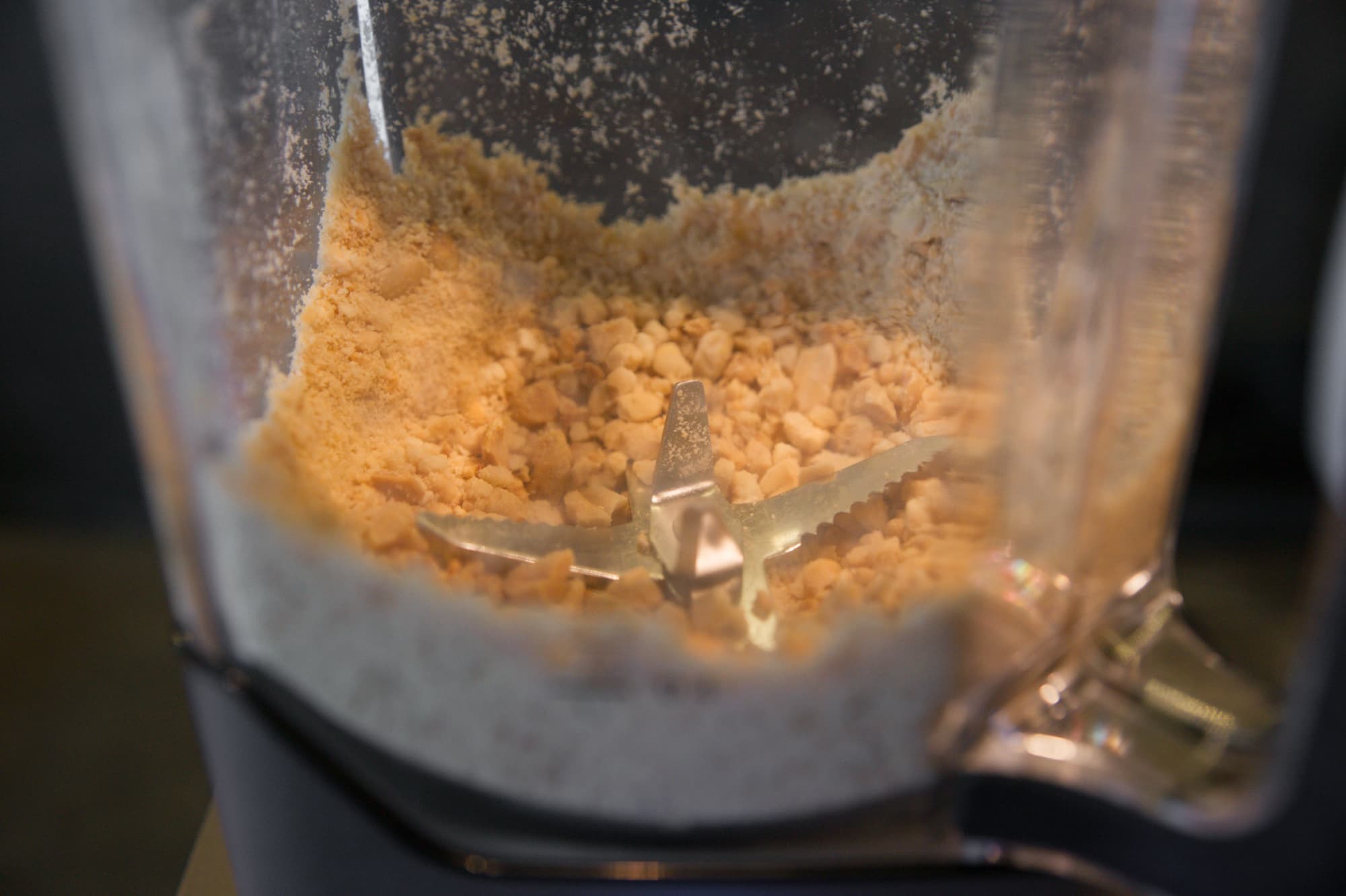 Когда вся масса раскрошилась, добавили соль и запустили блендер в режиме ручной настройки скорости, плавно переходя от 1-й к 5-й ступени.