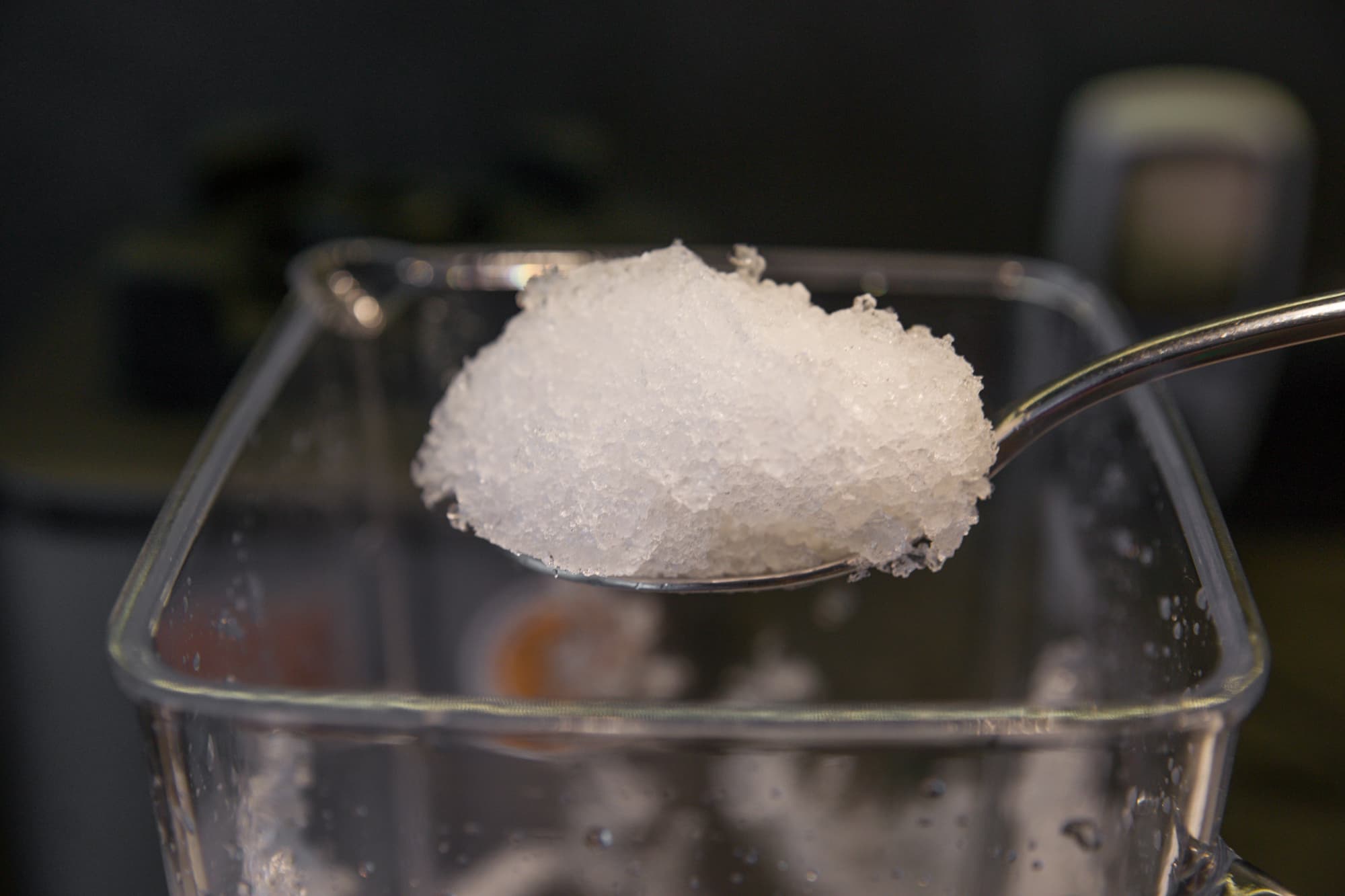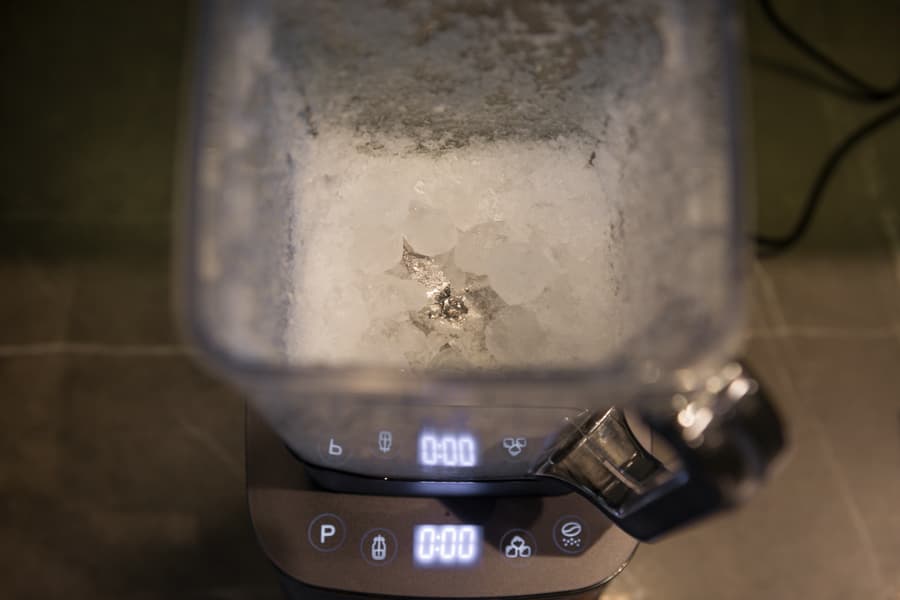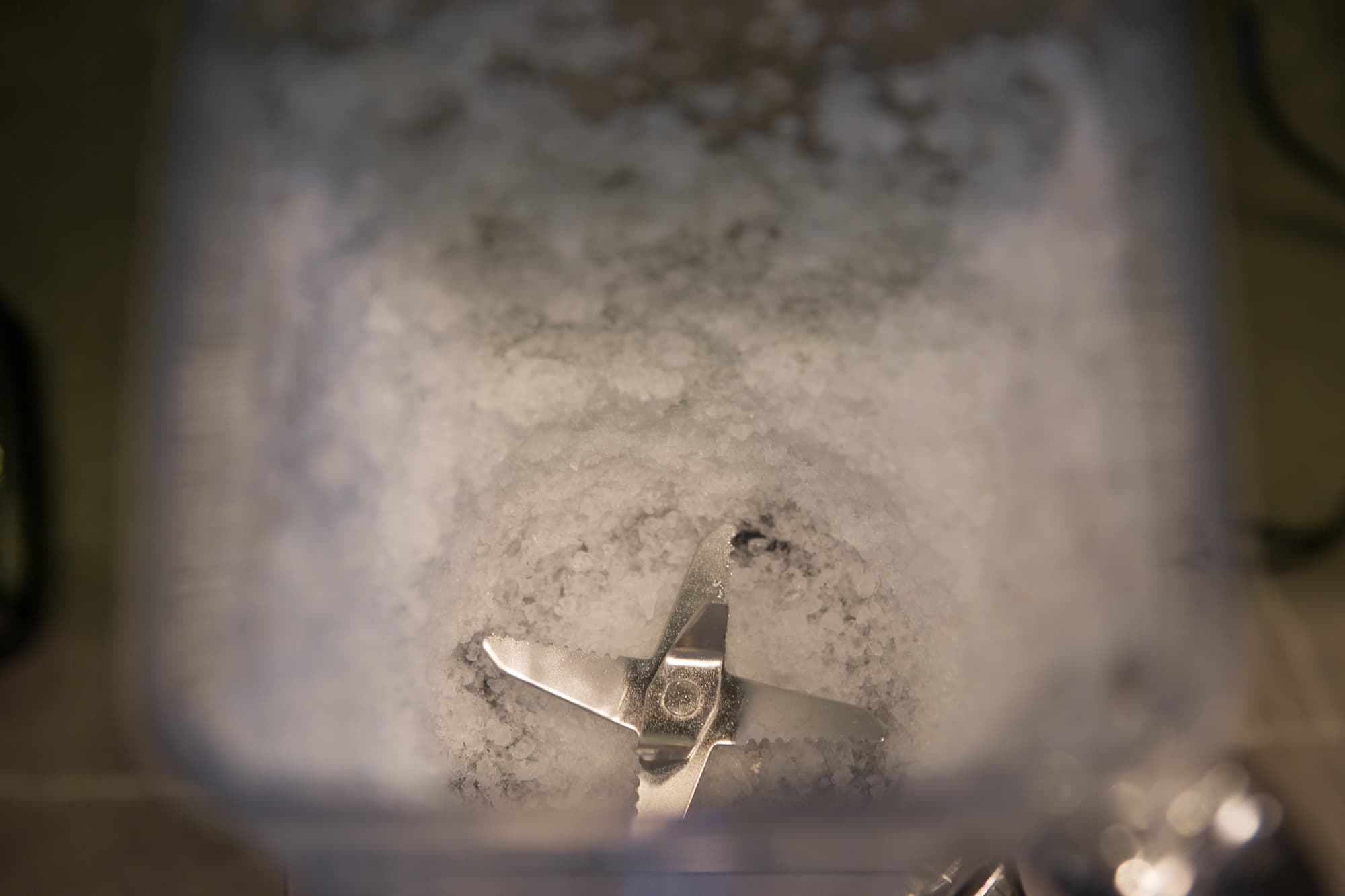 По окончании первого 20-секундного цикла специального режима для измельчения льда в центре чаши всё еще оставались крупные кусочки, поэтому процедуру пришлось повторить.