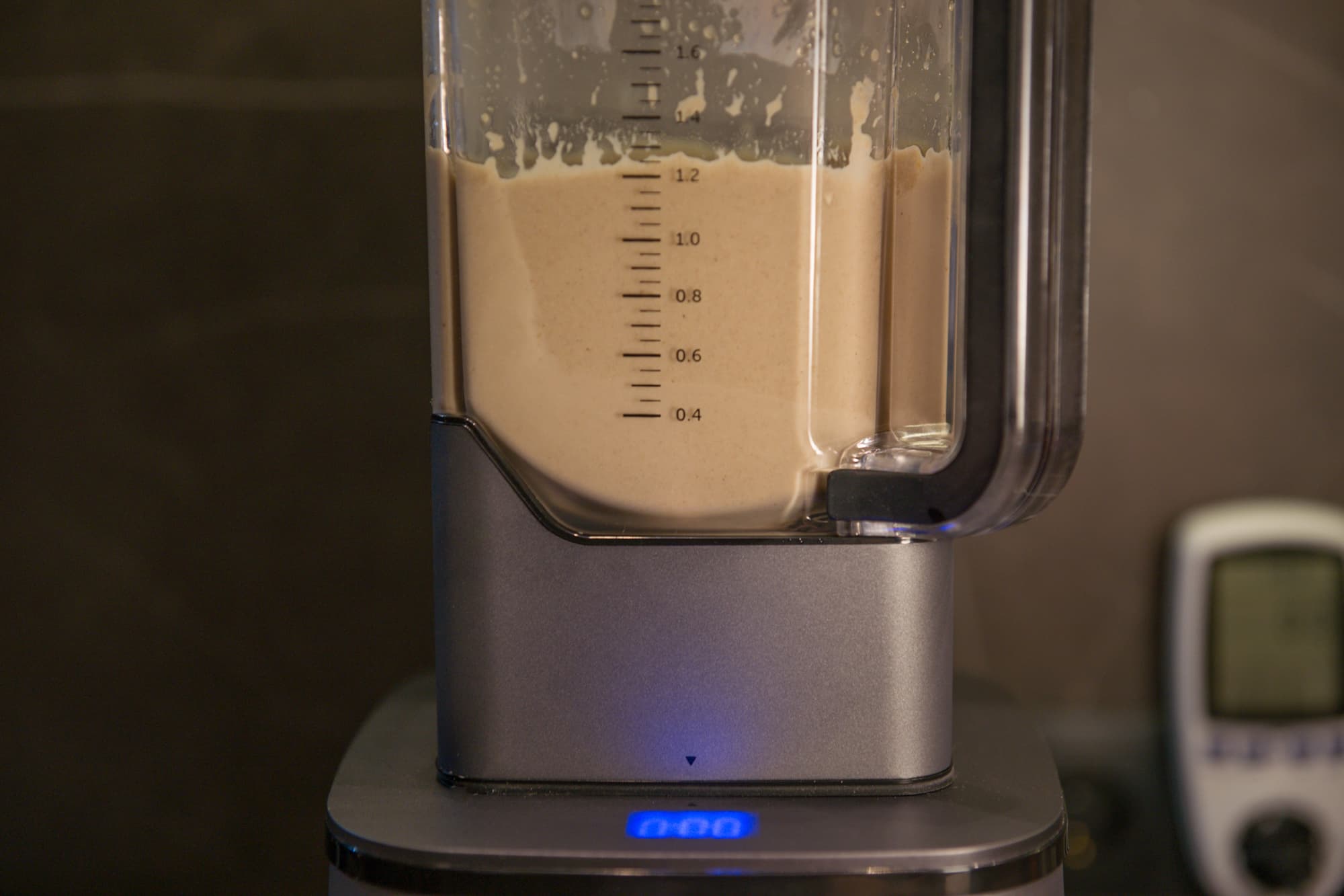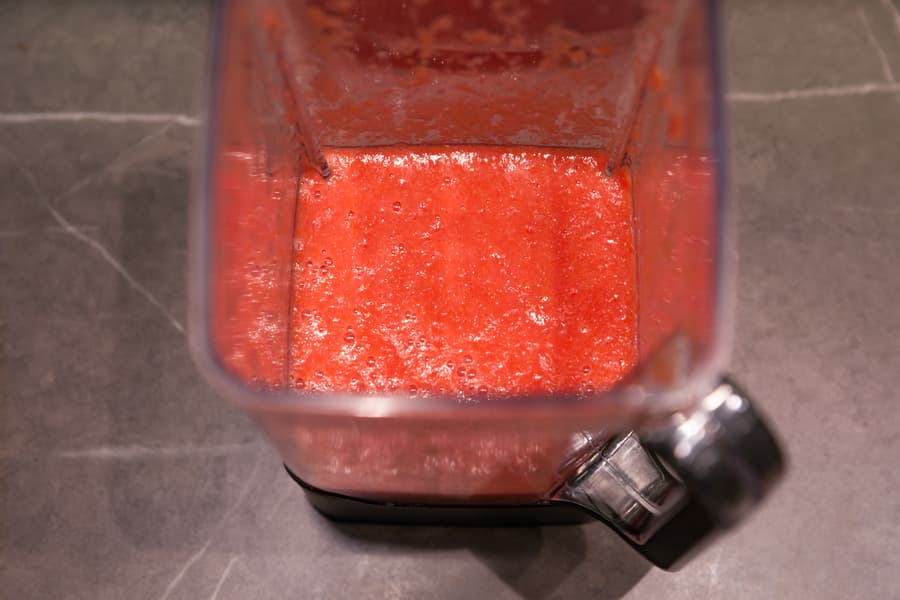 30 секунд на 5-й скорости — и мы получили тщательно измельченную воздушную массу с очень мелкими вкраплениями размолотой кожицы и семян.
