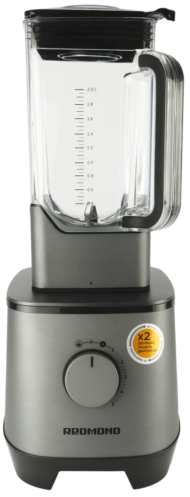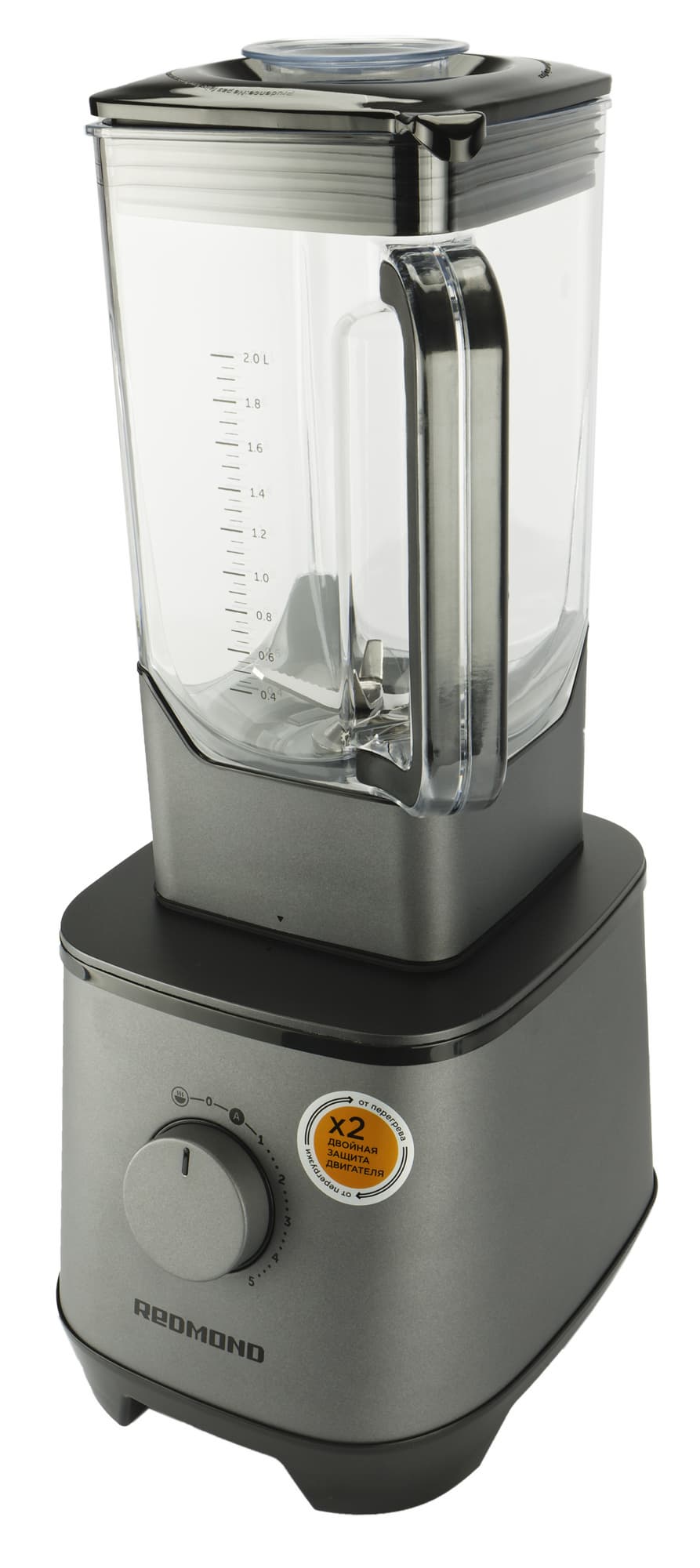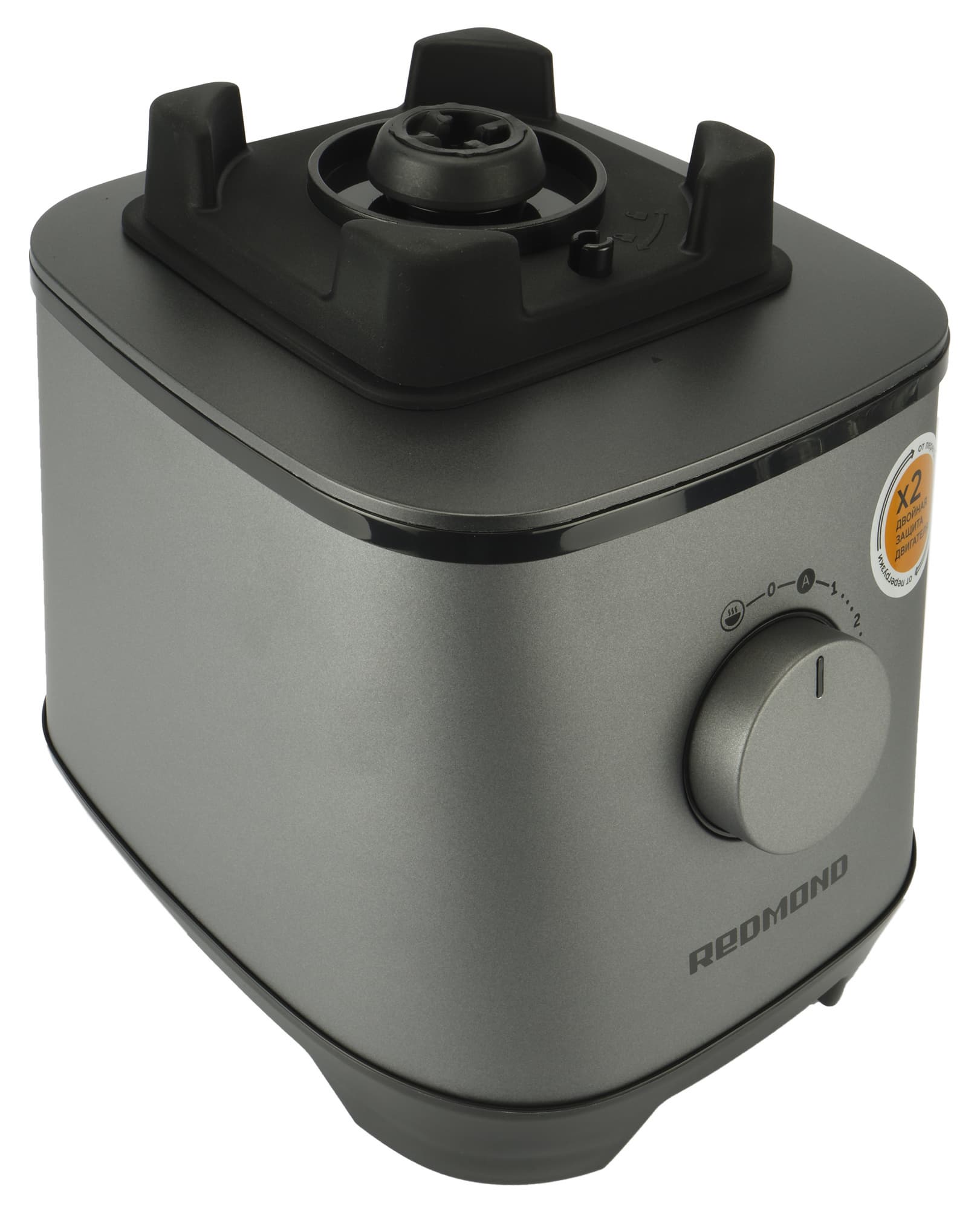 Тяжелый массивный блендер Redmond BS415 имеет строгий и даже брутальный вид. Корпус базы, как и основание двухлитрового кувшина, выполнены из матового пластика графитового оттенка и дополнены вставками черного цвета с глянцевым покрытием.