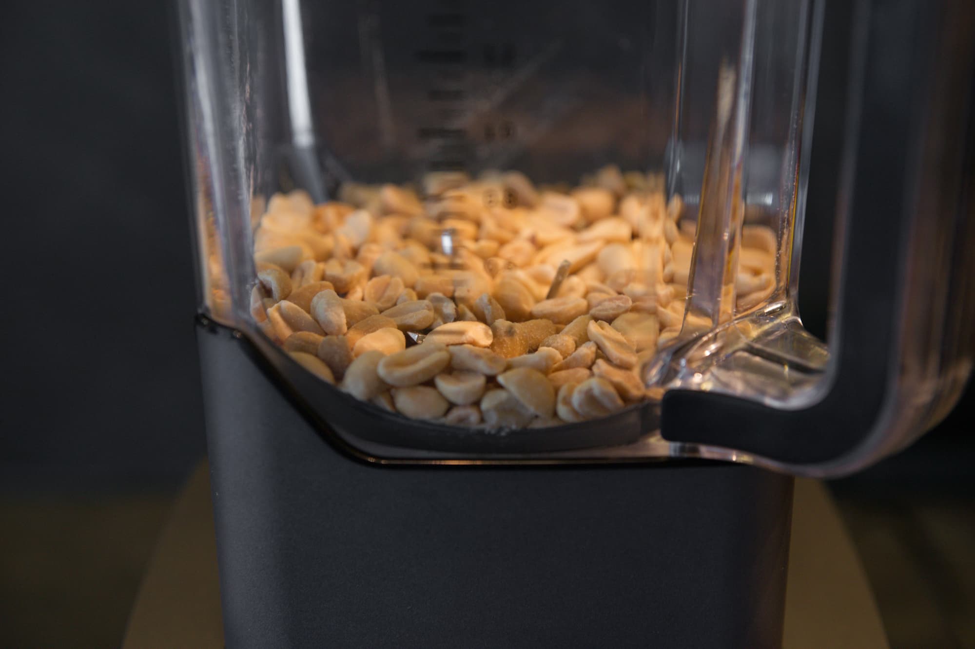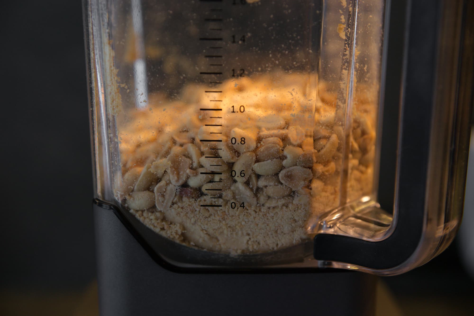 600 г очищенного и предварительно обжаренного арахиса загружали в кувшин постепенно, в три захода. Каждый раз запускали блендер в импульсном режиме примерно на минуту, а потом всыпали следующую порцию.