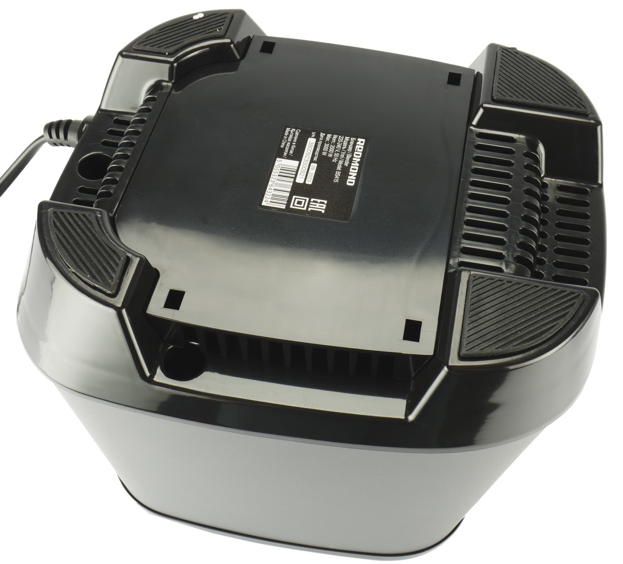 На дне прибора находятся вентиляционные прорези и наклейка со штрих-кодом и технической информацией. Сетевой шнур длиной 1,2 метра выходит снизу с тыльной стороны базы.