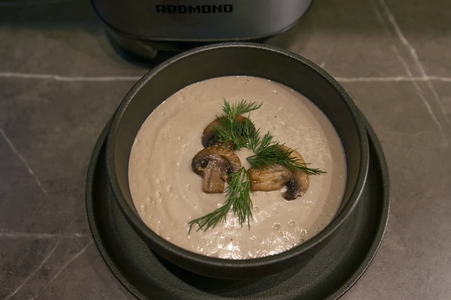 Мы остановили прибор и измерили температуру супа. Термометр показал 76 градусов. Продолжать дальше смысла не было — блюдо идеально однородное, достаточно взбитое и горячее.