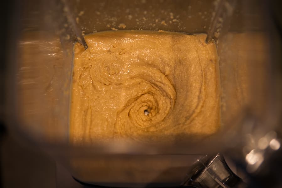 В процессе пару раз пришлось останавливать блендер, чтобы взять кувшин в руки и встряхнуть содержимое, так как оно периодически скапливалось по краям, а в центре ножи прокручивались вхолостую. Через 2,5 минуты мы получили густую вкусную пасту без целых кусочков.