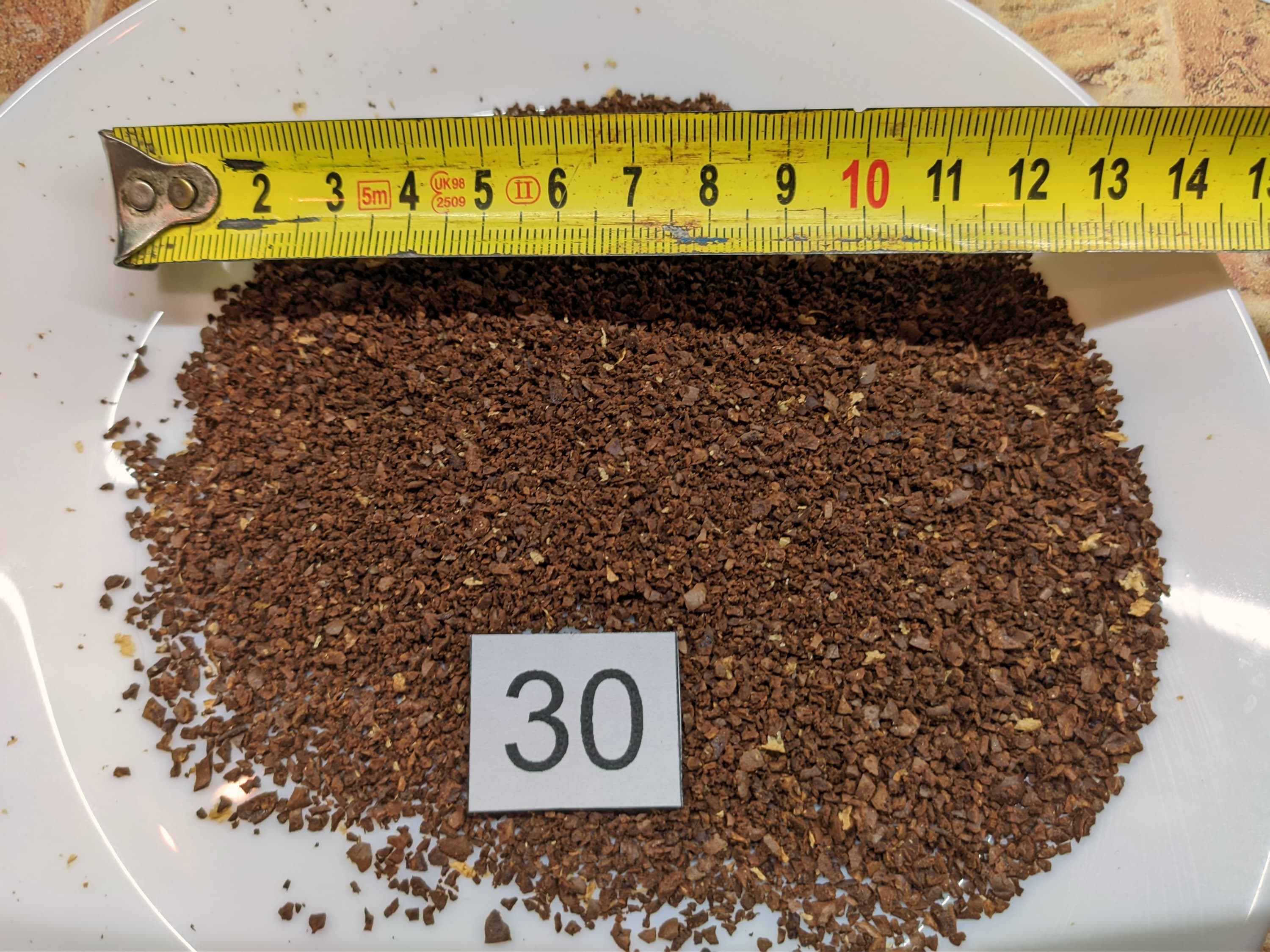 Наконец, самый крупный помол — 30. Судя по фото, однородность помола тут стремительно снижается. Мы видим и мелкие, и средние, и крупные частицы.