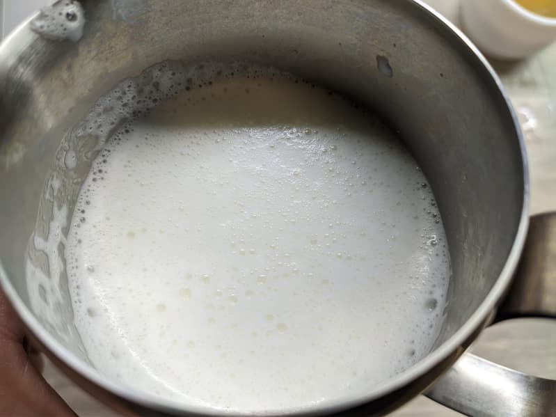 Менее чем через минуту мы получили густую и устойчивую молочную пенку.