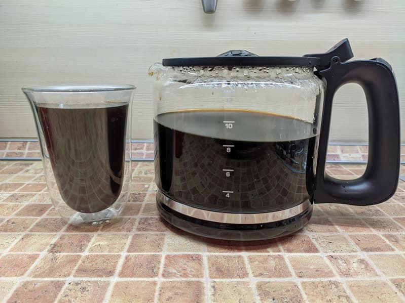 Тут мы не можем не посетовать на отсутствие единых стандартов в мире капельных кофеварок. Так, например, недавно протестированная нами кофеварка Redmond CM700 с кувшином объемом 1,2 литра также рассчитана на 12 чашек. Понятно, что «чашки» у двух разных моделей получатся разного объема.