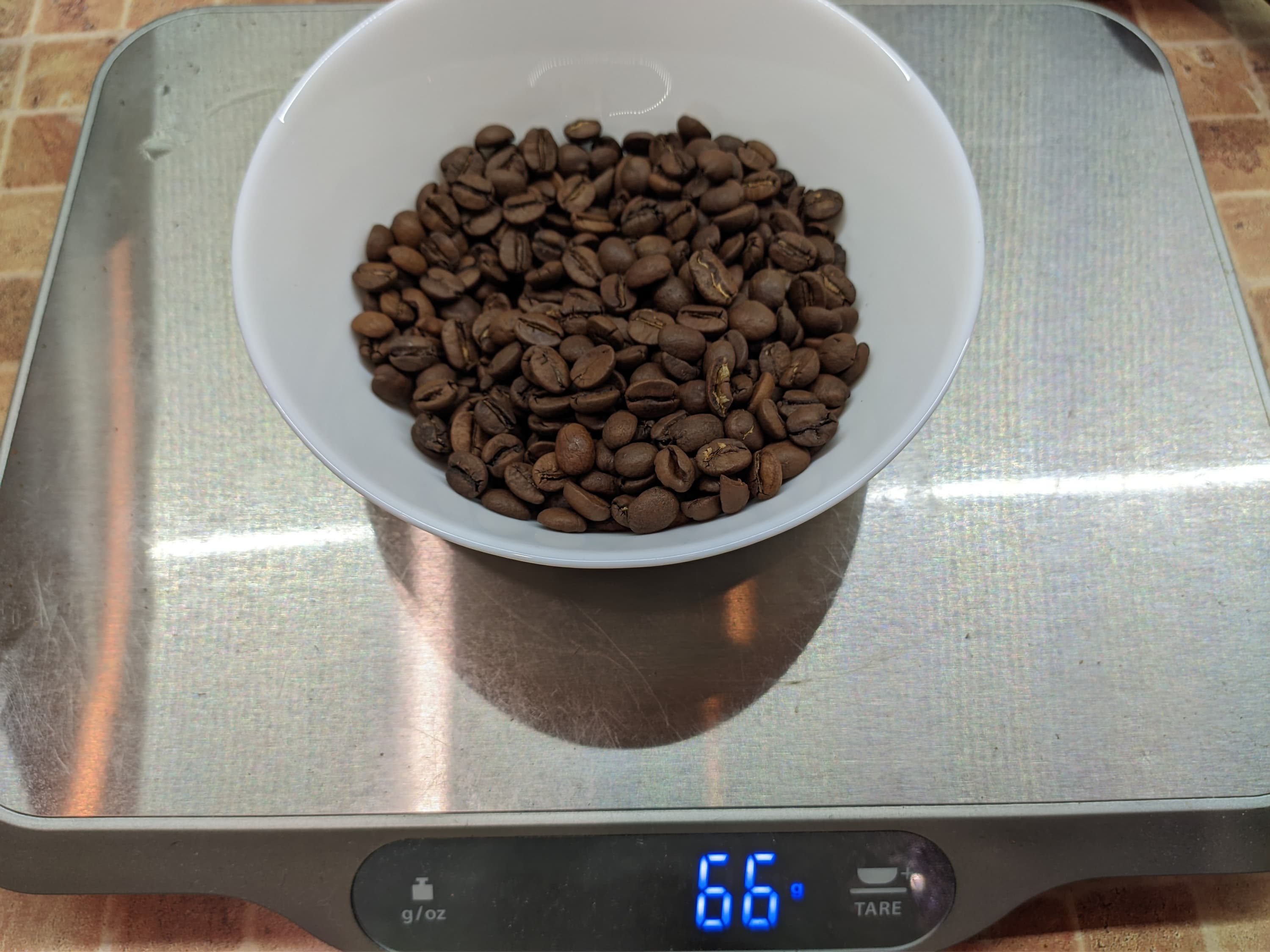 Мы засыпали 66 граммов кофе, запустили кофеварку и засекли время.