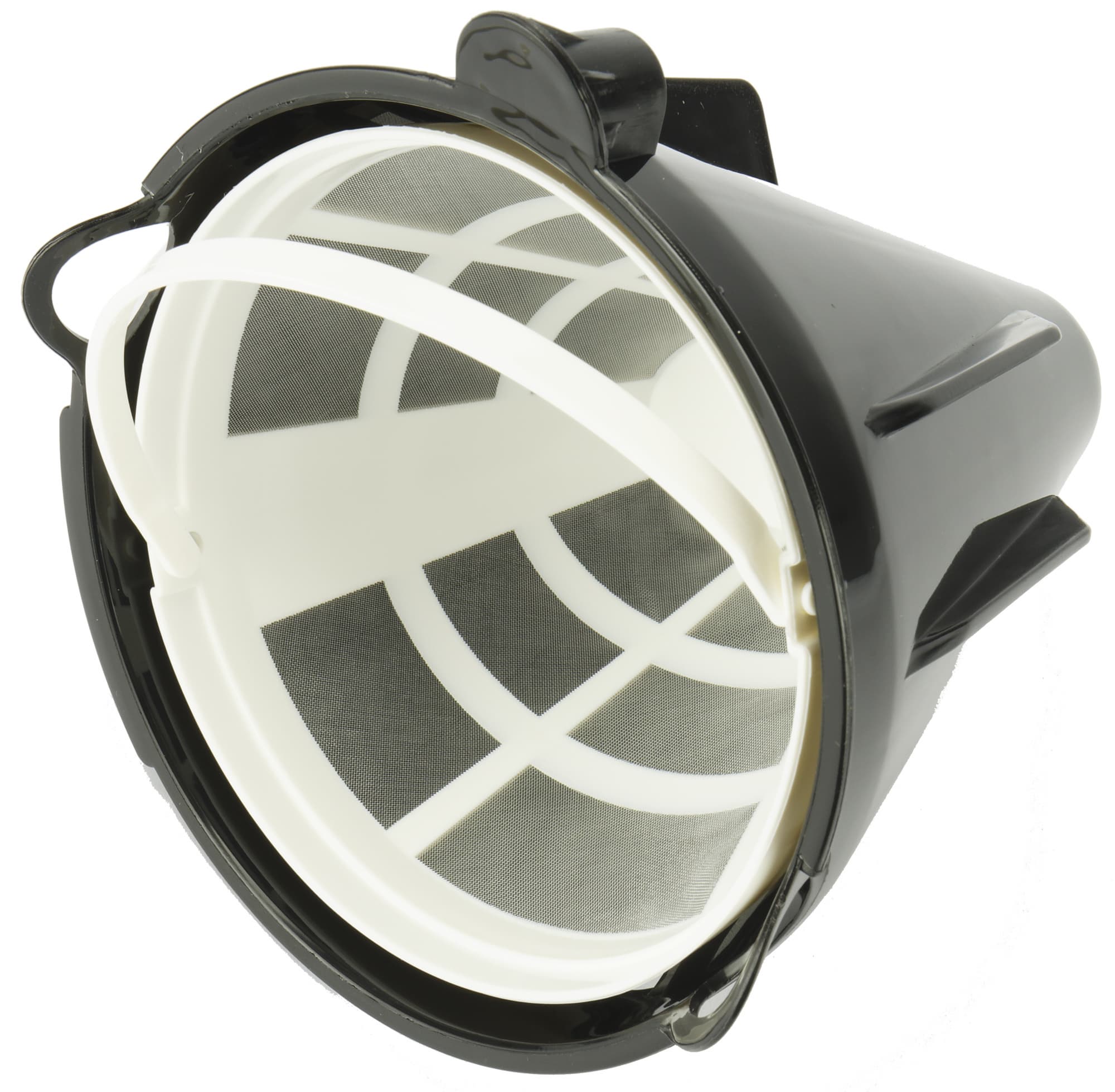 Сам заварочный отсек состоит из трех частей — пластикового корпуса, в который вставляется пластиковый конус с антикапельной системой, а внутрь конуса устанавливается либо многоразовый нейлоновый фильтр-сетка, оснащенный ручкой (есть в комплекте), либо одноразовый бумажный фильтр.