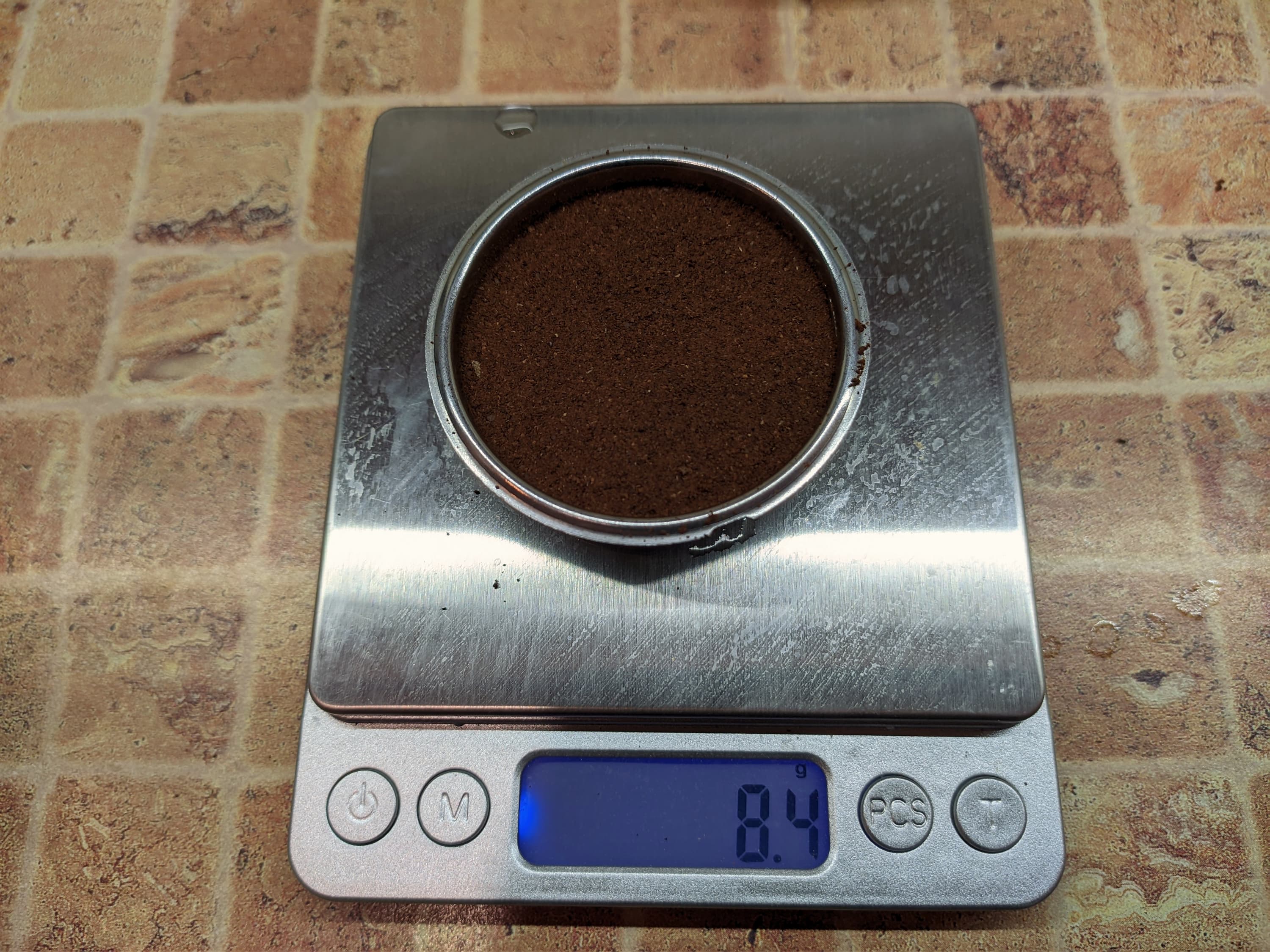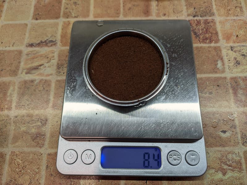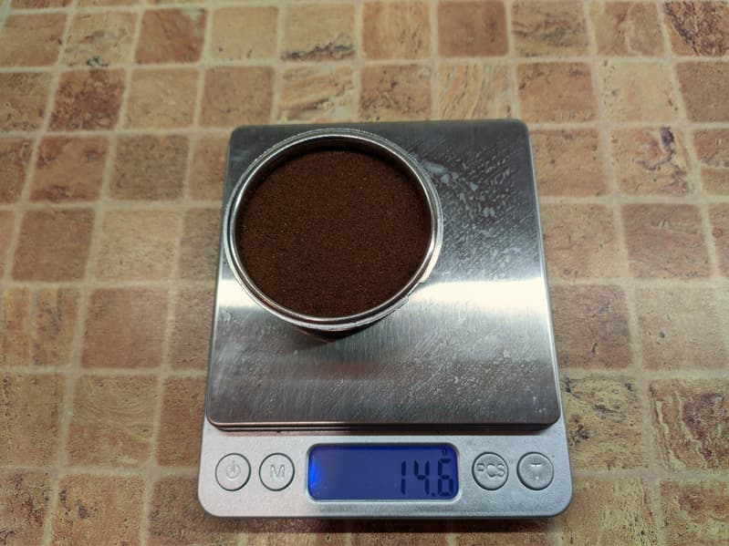 Для тестов мы взяли стандартный помол. Точно такой же мы используем для приготовления эспрессо на полу-профессиональных рожковых кофеварках. Отметим, что наша кофеварка готовит кофе с предсмачиванием. То есть предварительно (примерно в течении 4 секунд) подает горячую воду, и лишь потом начинает пролив основного объема воды.