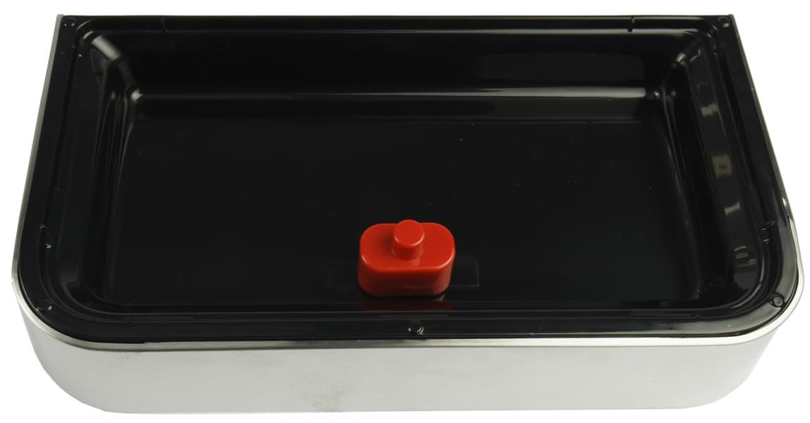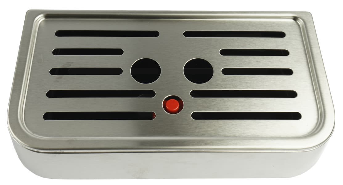 Под чашкой располагается металлическая подставка и съемный пластиковый поддон для сбора капель. Благодаря продуманному дизайну при повседневной эксплуатации пластик не виден. У поддона имеется индикатор заполнения — красный пластиковый поплавок.