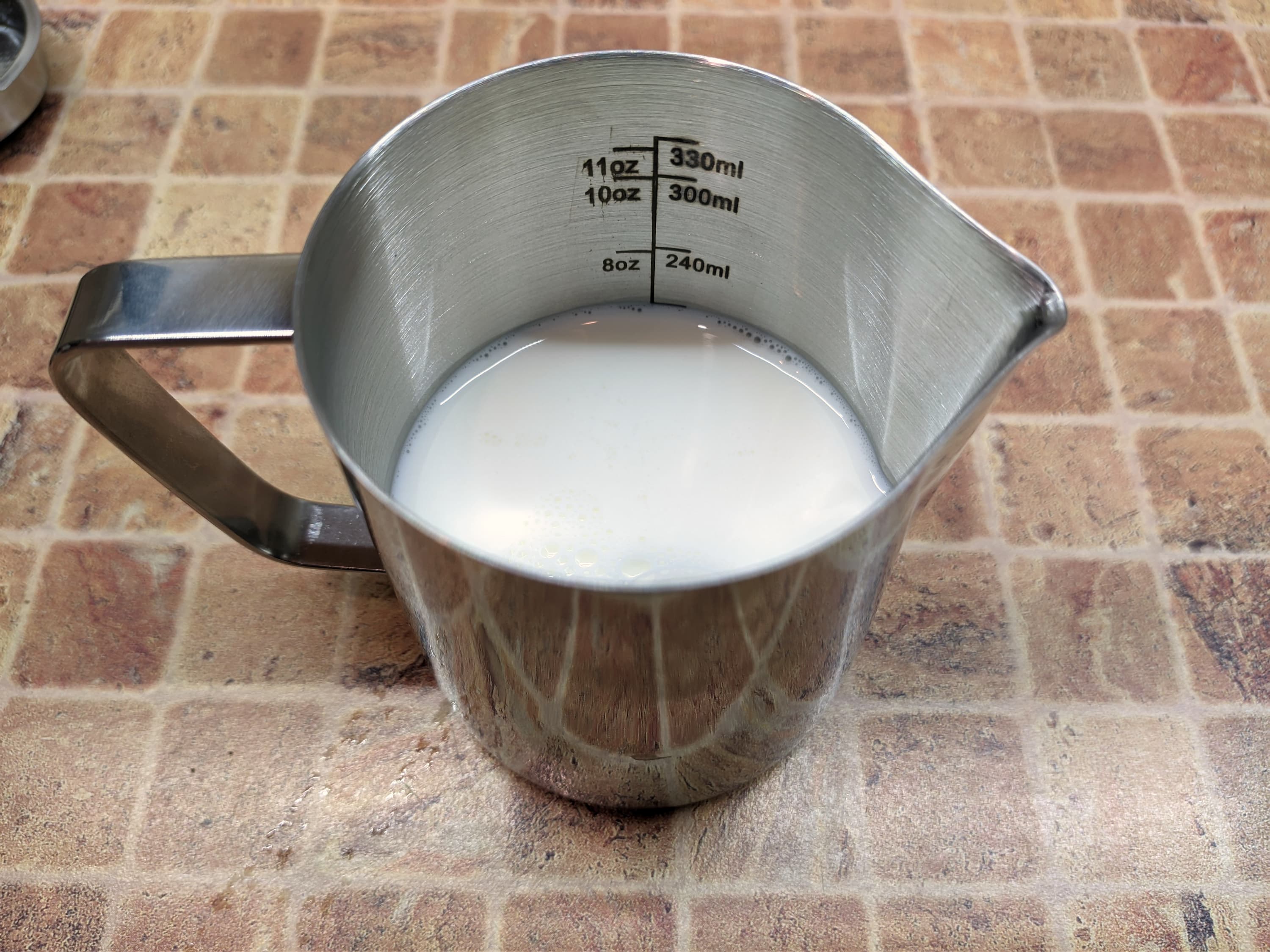 Третий аксессуар — металлический питчер объемом 330 мл. Выглядит он вполне стандартно, но, опять же — не придется идти в магазин и тратить дополнительные деньги. На внутренней стороне питчера нанесена градуировка от 120 до 330 мл с шагом в 60 мл, а также от 4 до 11 унций с шагом в 2 унции.
