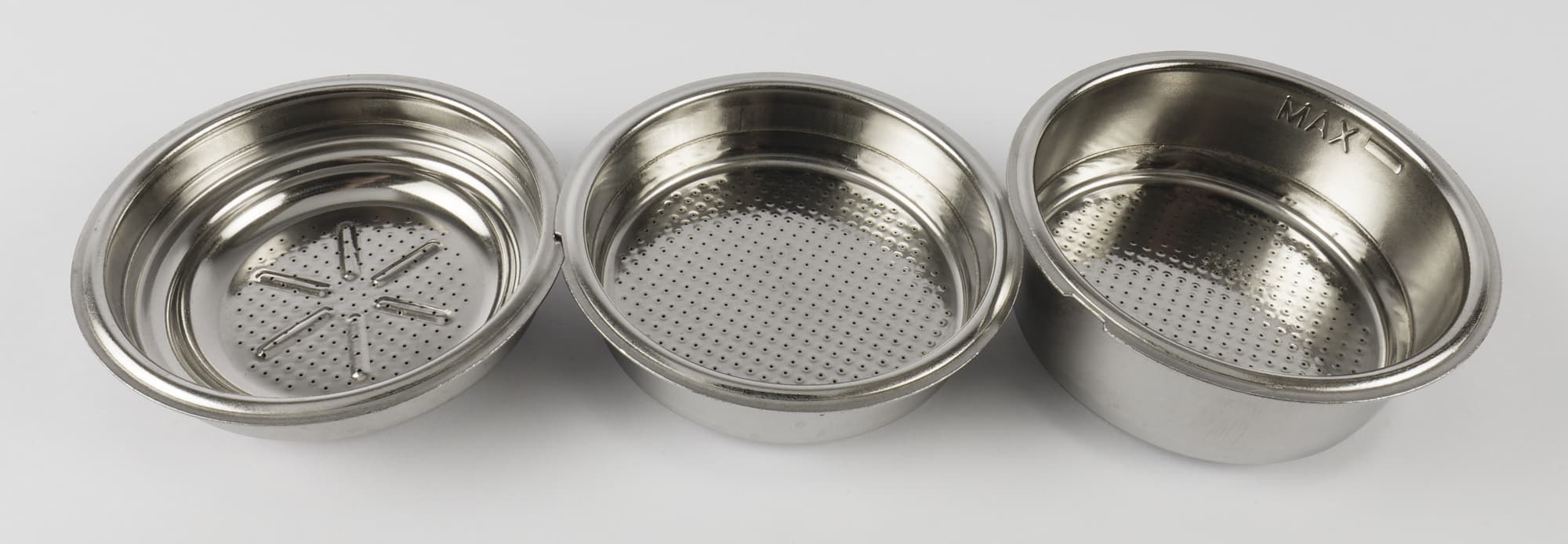 Рожок поставляется с двумя фильтрами на 1 или 2 чашки соответственно. Фильтры, как принято у домашних рожков, у нас с двойным дном. То есть с «улучшайзером», задачей которого является исправление потенциальных ошибок пользователя и выравнивание вкуса кофе даже при неправильно подобранном помоле или дозировке. В фильтре под основной перфорированной сеткой есть второе дно, а в нем по центру — небольшое отверстие.