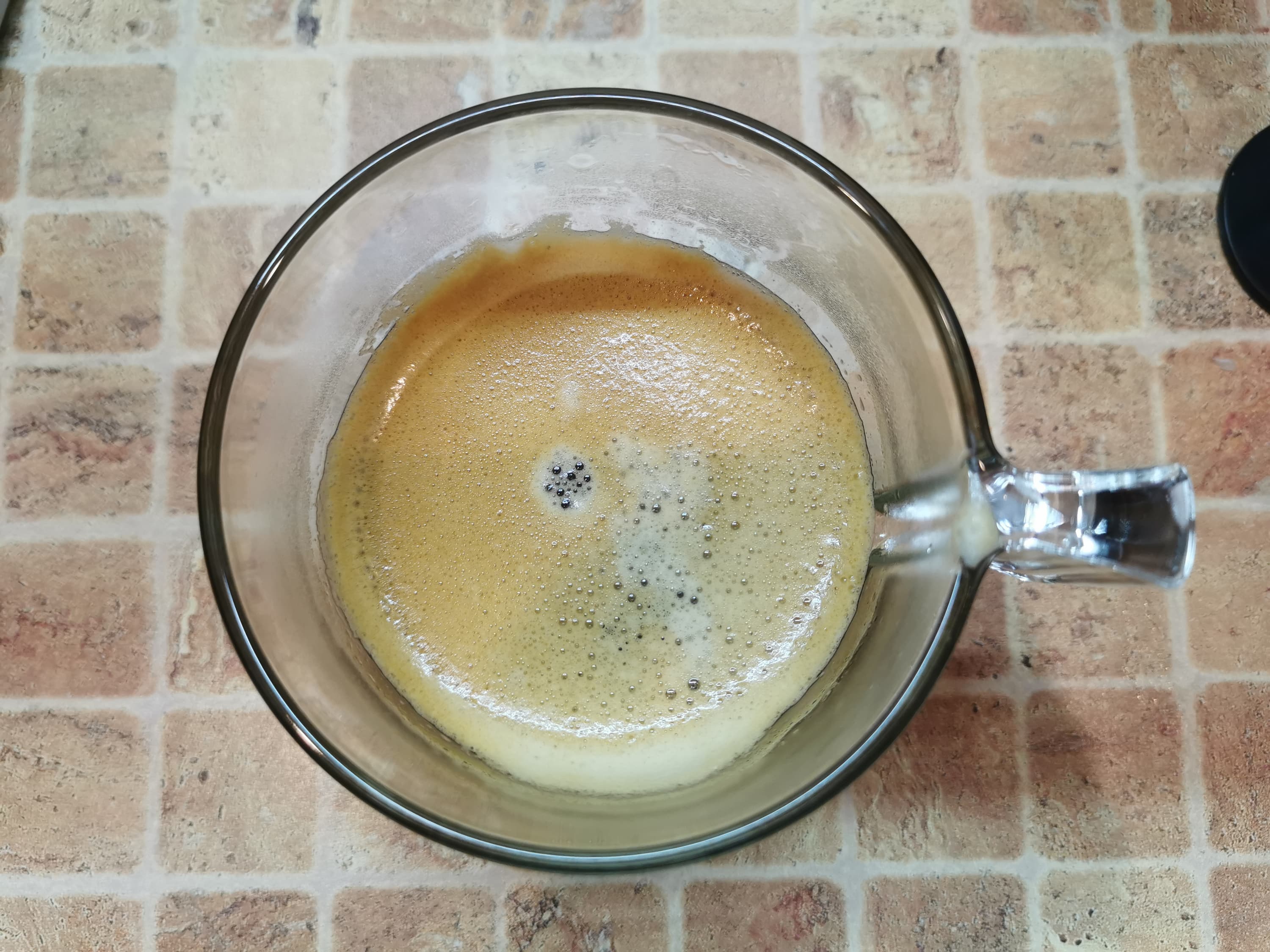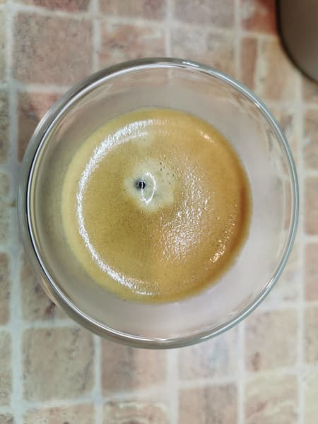 Однако после отпускания кнопки мы в течение 10 секунд наблюдали за тоненькой струйкой, продолжавшей наполнять нашу емкость. Порция вместо 30 классических граммов оказалась равна 43 граммам напитка с температурой 67,4 °C (в непрогретой чашке). Так мы выяснили, что процесс приготовления вручную стоит прекращать немного заранее, чтобы приблизиться к желаемому результату.