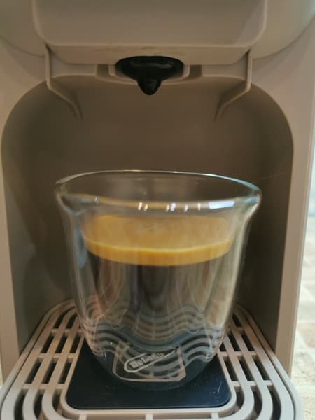 Наш первый тест — приготовление эспрессо с помощью капсулы Nespresso. Для этого режима мы воспользовались первой кнопкой.