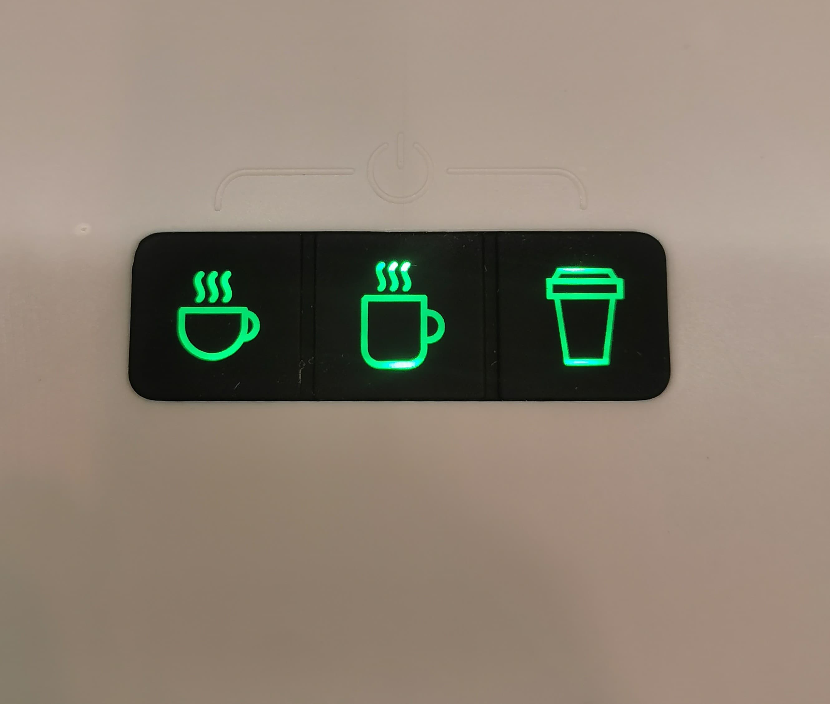 У каждой кнопки имеется собственная светодиодная подсветка, с помощью которой можно легко узнать текущий статус устройства — готова ли кофеварка к работе, закончилось ли приготовление напитка или еще продолжается и т. п.