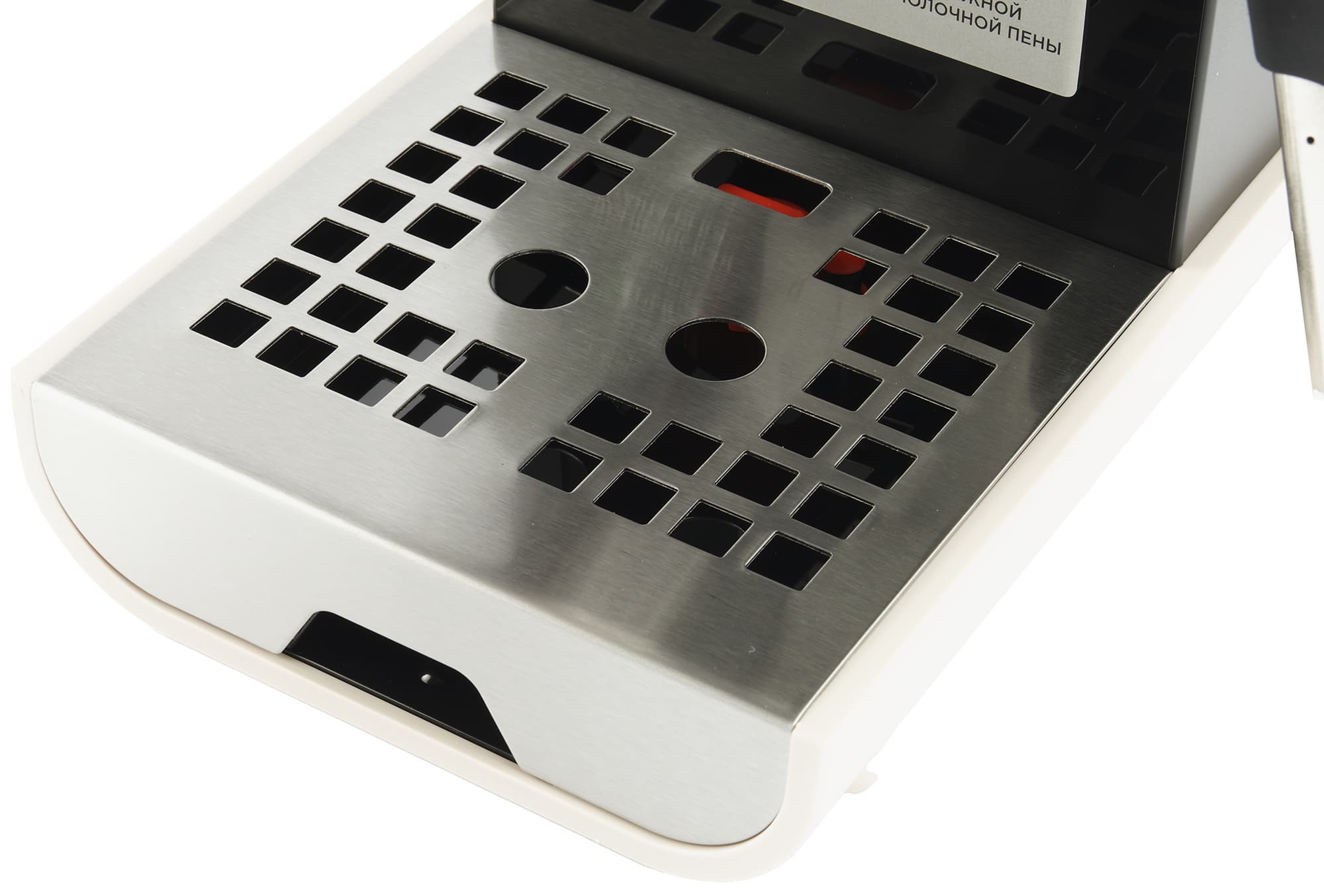 Чашка устанавливается на специальную съемную решетку, через отверстия которой излишки воды или молока стекают вниз.