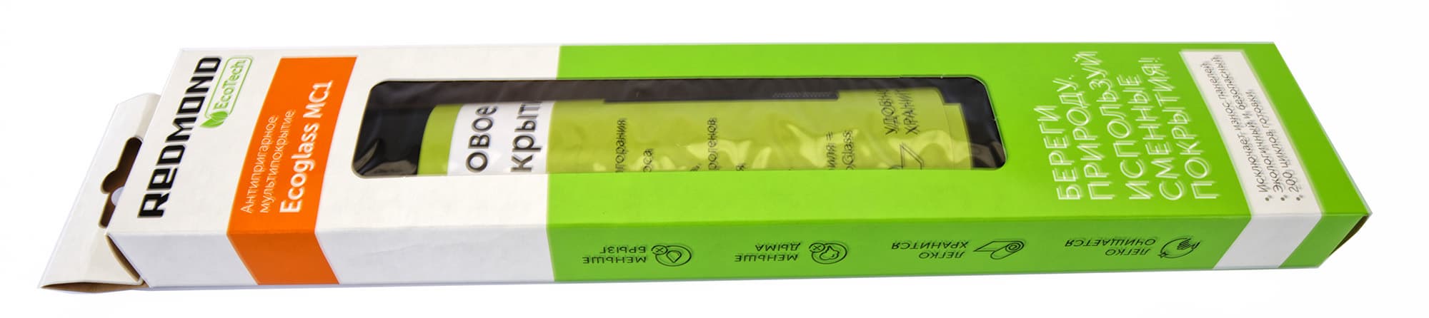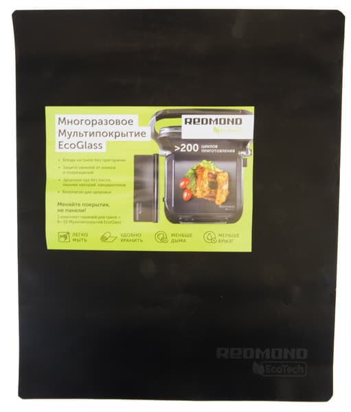 Антипригарное мультипокрытие Redmond Ecoglass MC1 представляет собой универсальный «коврик», позволяющий готовить блюда на гриле, сковороде или в духовке. Разработчик сообщает, что покрытие позволяет готовить без пригораний, защищает панели от износа и повреждений, а также безопасно для здоровья и позволяет готовить еду без масла, лишних калорий (что?) и канцерогенов.