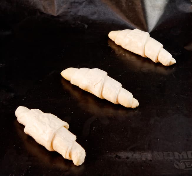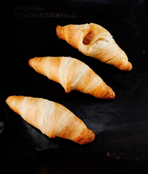 Мы постелили покрытие на обычный противень, выложили на него круассаны и засекли время.