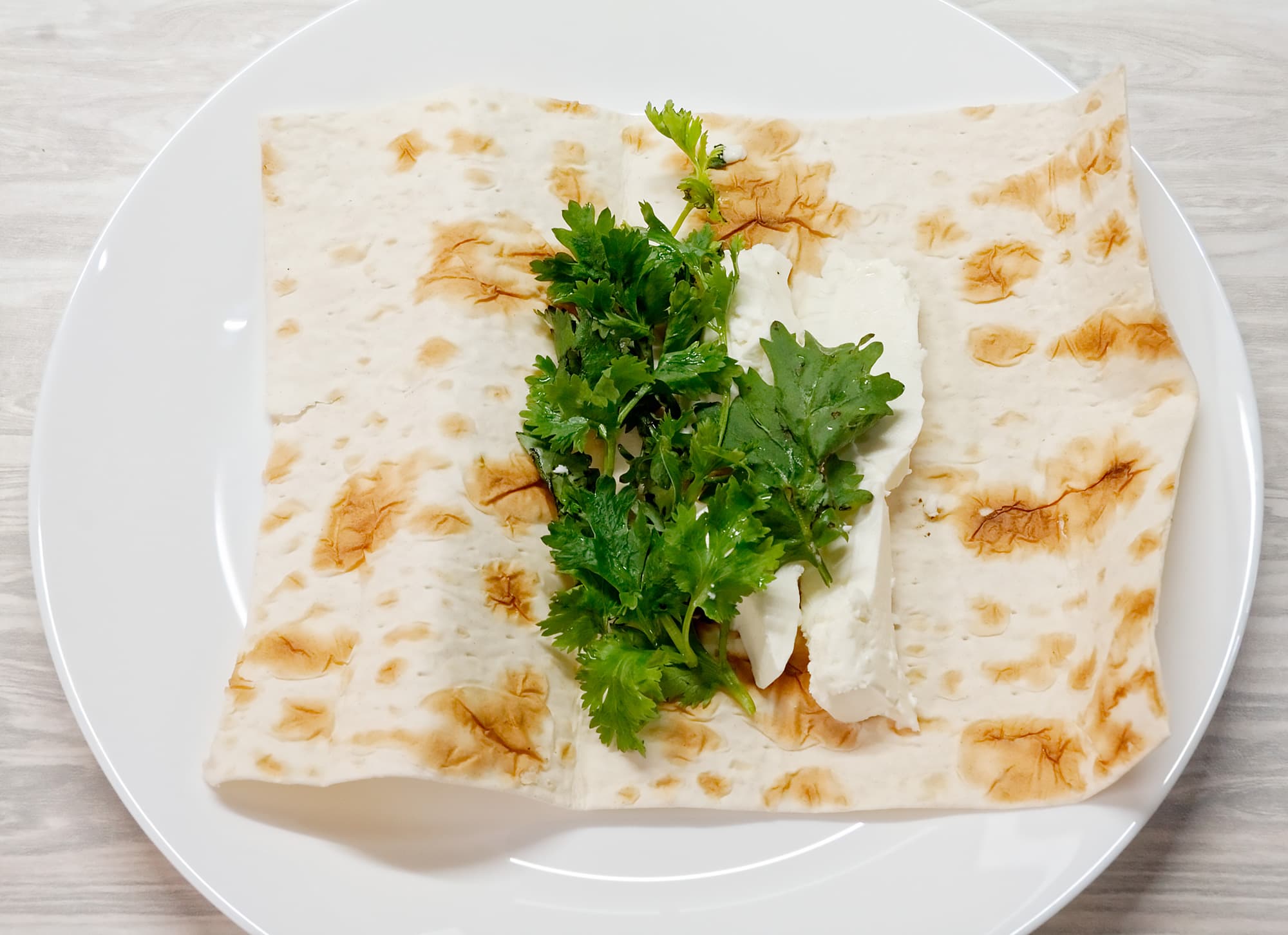 Для этого блюда мы взяли свежий лаваш, мягкий сыр и зелень. Нашей целью было приготовление быстрой и простой горячей закуски на гриле.