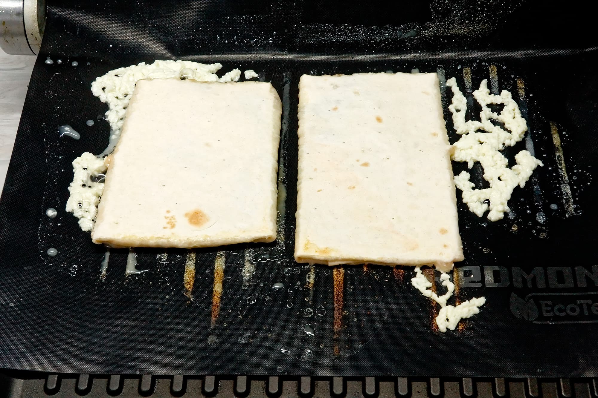 Отдельно порадовало, что хотя часть сыра вытекла в процессе жарки, к покрытию он пригорел довольно слабо и легко очистился.