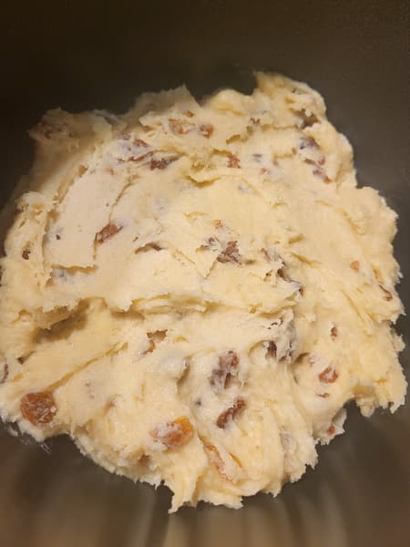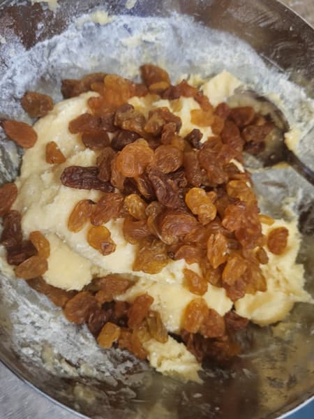 Сливочное масло размягчили, изюм промыли, все ингредиенты высыпали в миску и аккуратно перемешали.