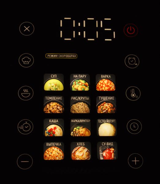 Следующий ряд индикаторов — это индикатор работы в режиме скороварки и индикатор работы в режиме мультиварки.