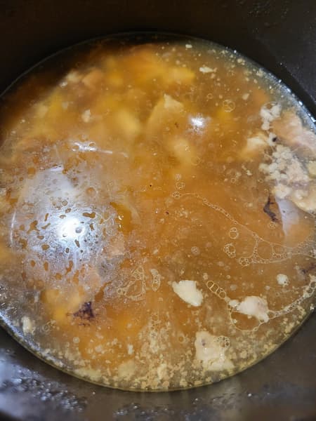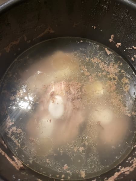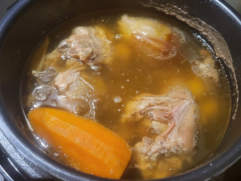 Поскольку это был первый тест, тут-то мы и начали мучиться с паровым клапаном. Пока мы его крутили так и эдак, бульон сварился — даже несмотря на то, что мультиварка-скороварка так и не зажгла нам кнопку «давление». Причем мясо сварилось и было мягким.