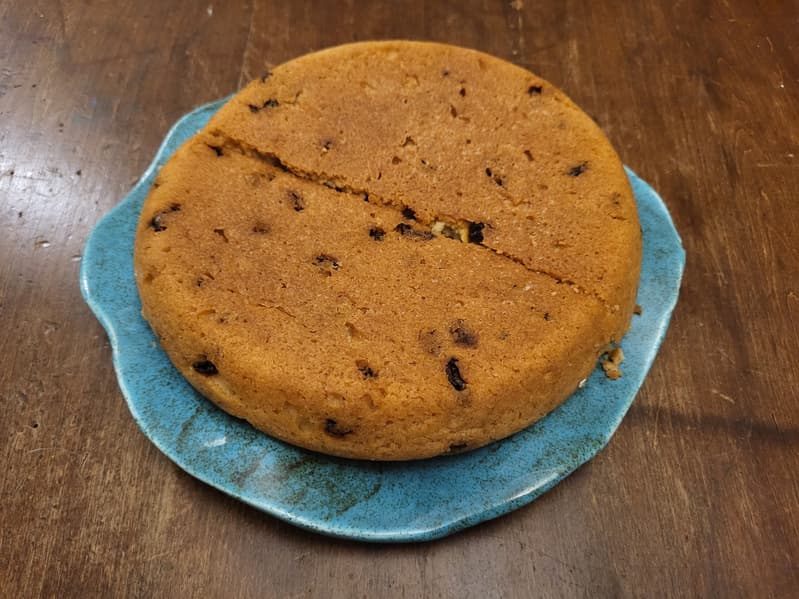 По истечении работы программы, через 1 час 30 минут, мы достали кекс из прибора. Кекс был совершенно готов, румян снаружи и пропечен изнутри.