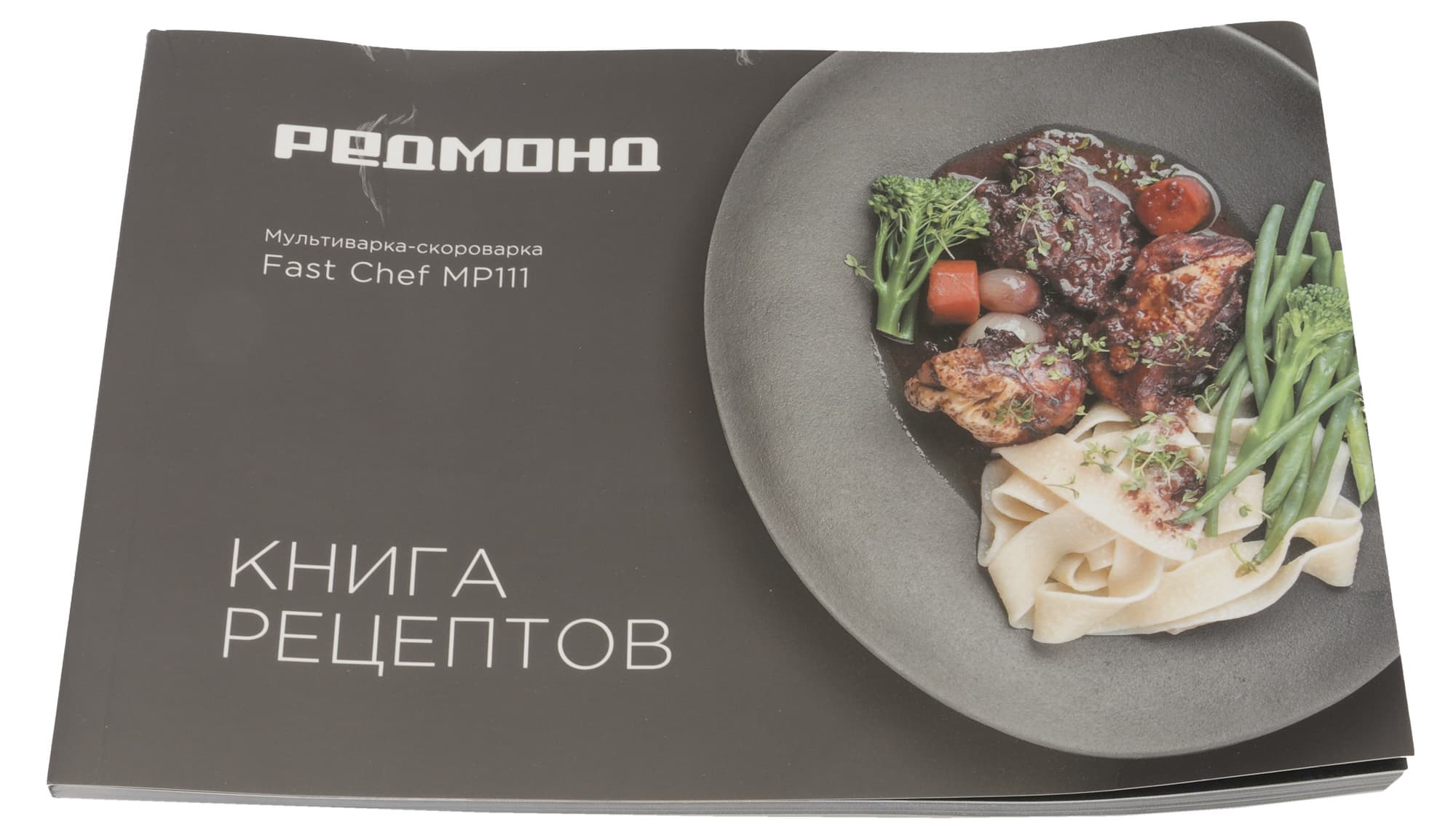 К мультиварке-скороварке прилагается иллюстрированная книга на 125 рецептов. Это каши, супы, вторые блюда, гарниры, блюда на пару́, закуски и салаты, хлеб и выпечка, напитки и десерты, блюда су-вид и во фритюре, рецепты кисломолочных продуктов, консервации и отдельное детское меню. Все рецепты сопровождаются качественными, красивыми и вкусными фотографиями.