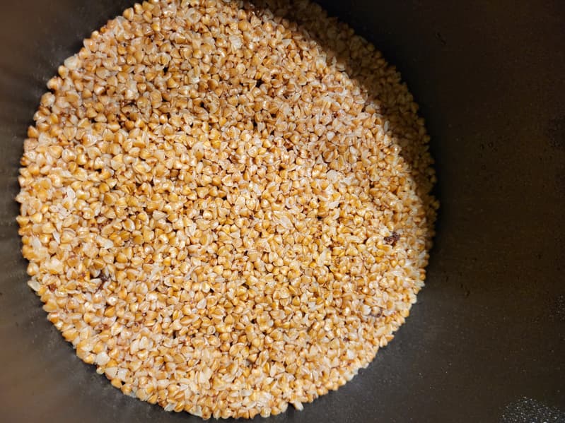 Через полчаса (да, не через 10 минут) мультиварка просигнализировала нам о готовности каши. Вода испарилась, гречка была готова.