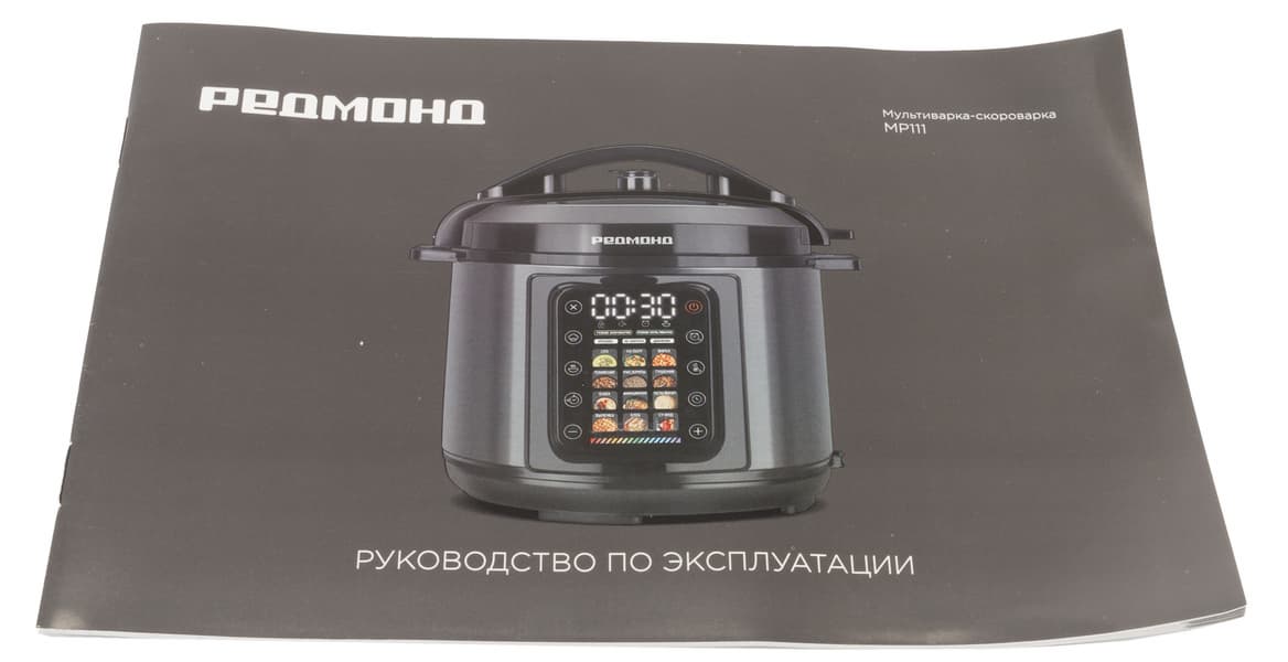 Результаты визуального осмотра и первого знакомства с мультиваркой-скороваркой Redmond Fast Chef MP111 можно считать успешными. Прибор качественно и красиво сделан, конструкция простая и не должна вызвать особых сложностей у пользователя.
