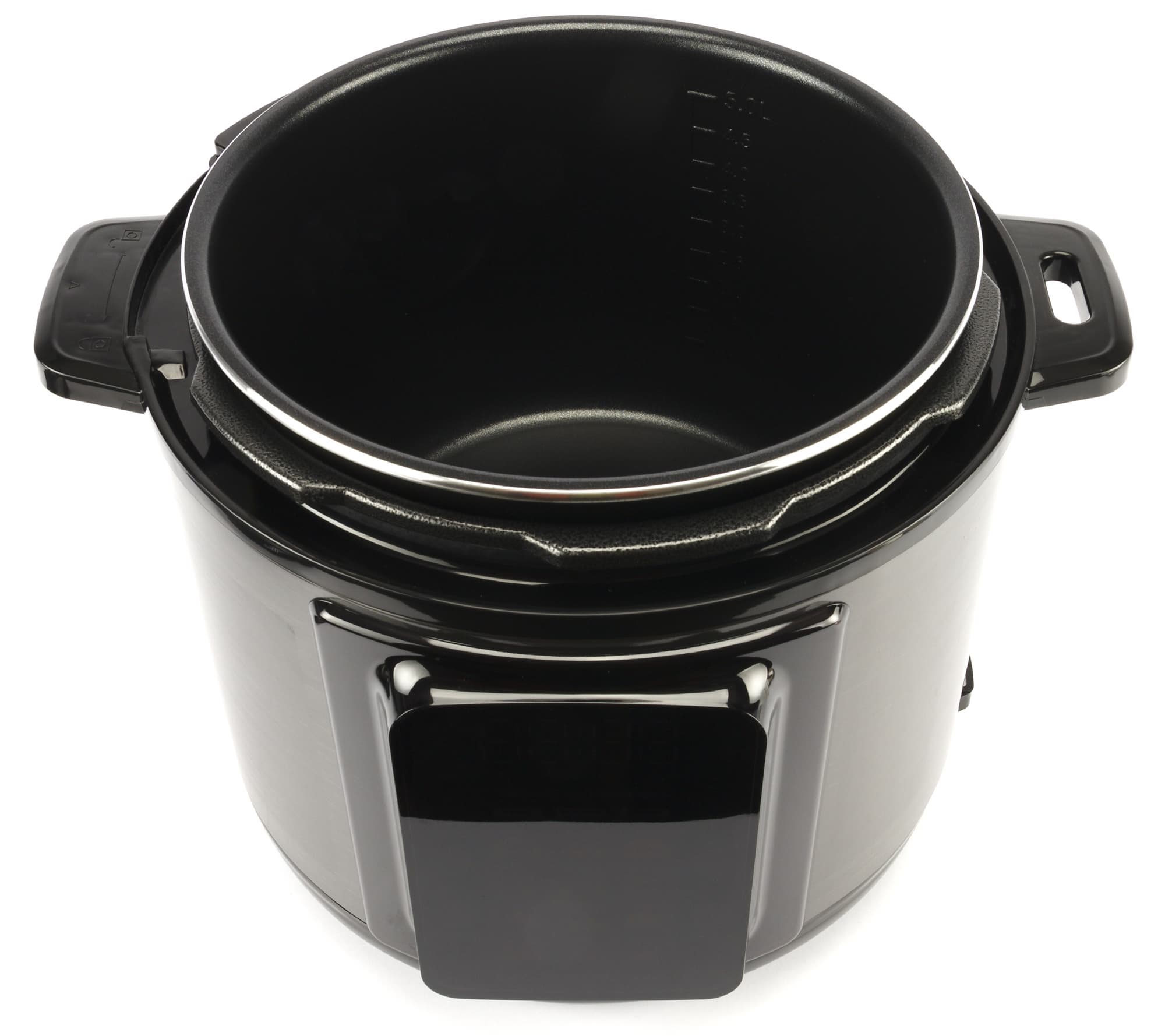Полезный объем чаши мультиварки — 5 литров. Производитель отмечает, что благодаря антипригарному покрытию Daikin ее легко мыть.