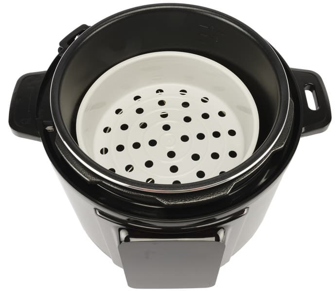 Внутрь чаши свободно устанавливается подставка для приготовления на пару́, на которую сверху ставится контейнер для приготовления на пару́.