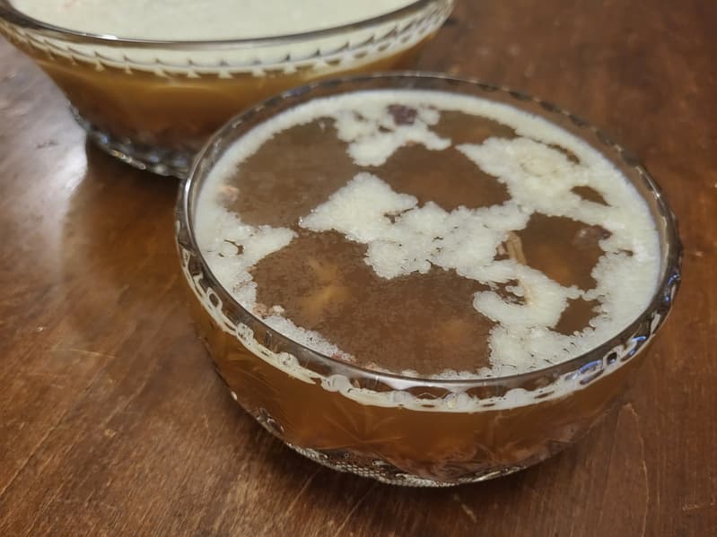 Порезали мясо, залили бульоном и отправили на ночь в холодильник. К утру холодец застыл.