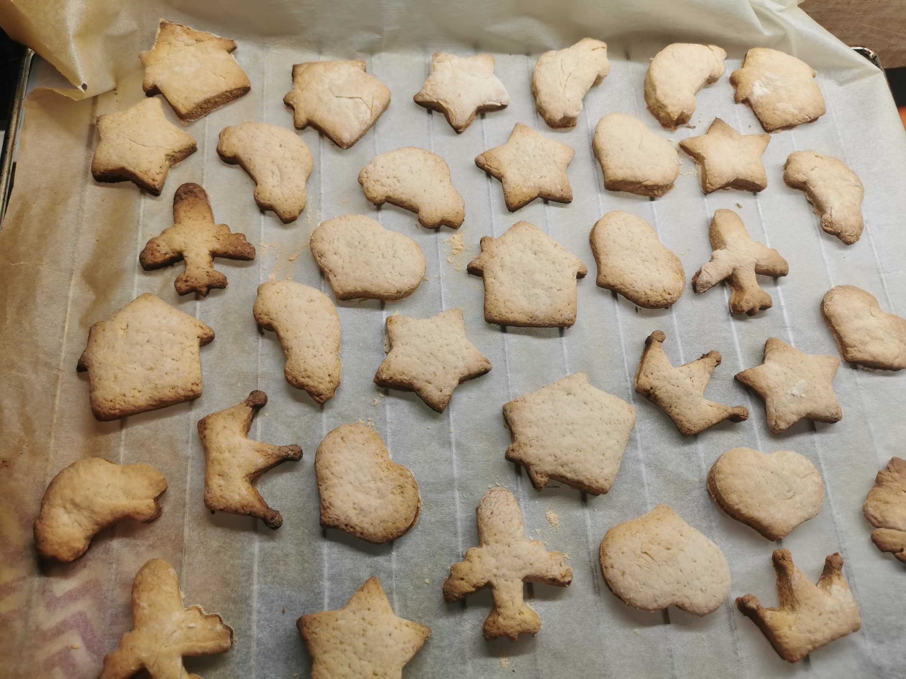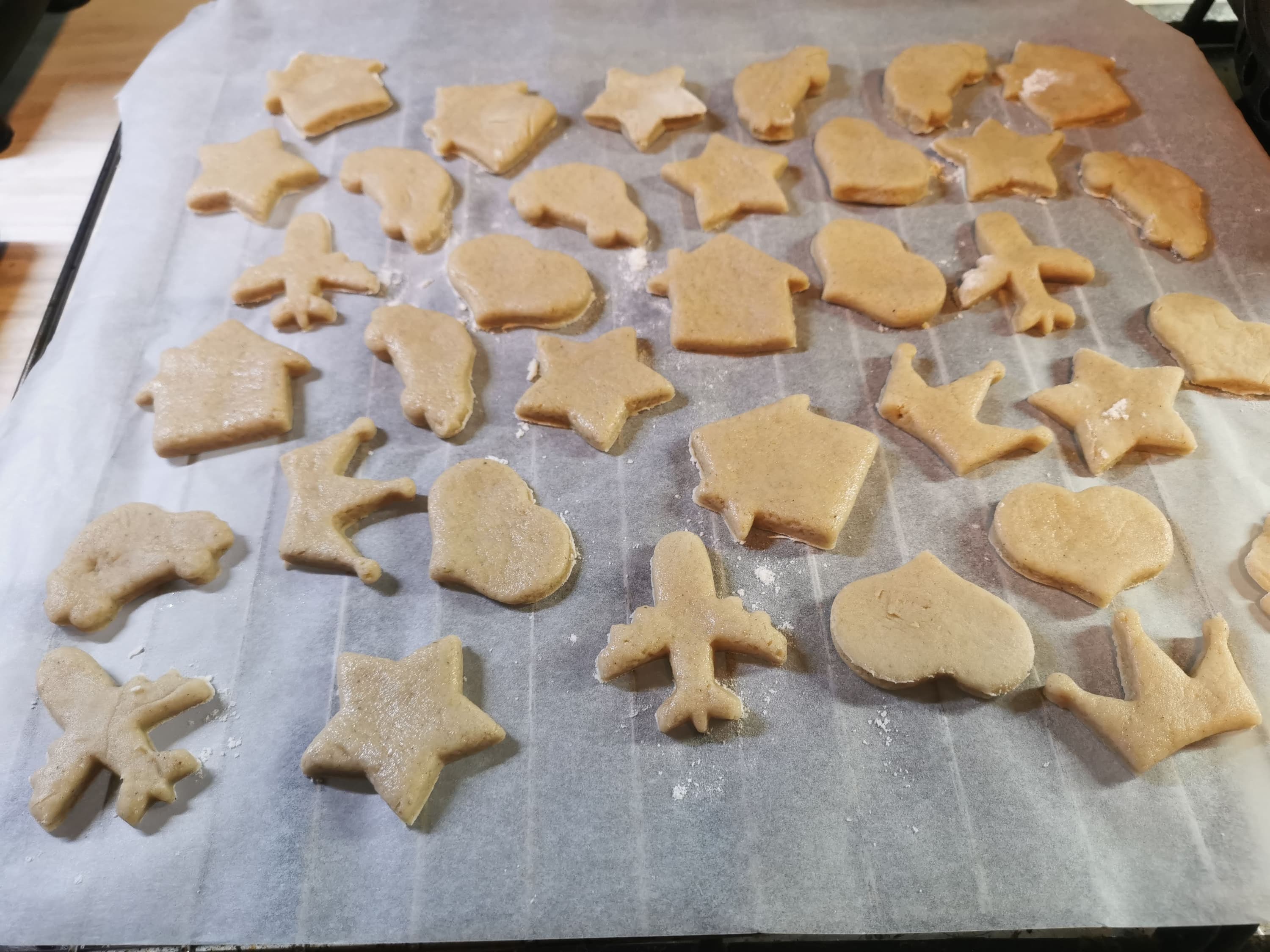 Вырезанные фигурки мы выложили на пергамент и отправили в духовку на 10 минут при температуре 180 градусов.