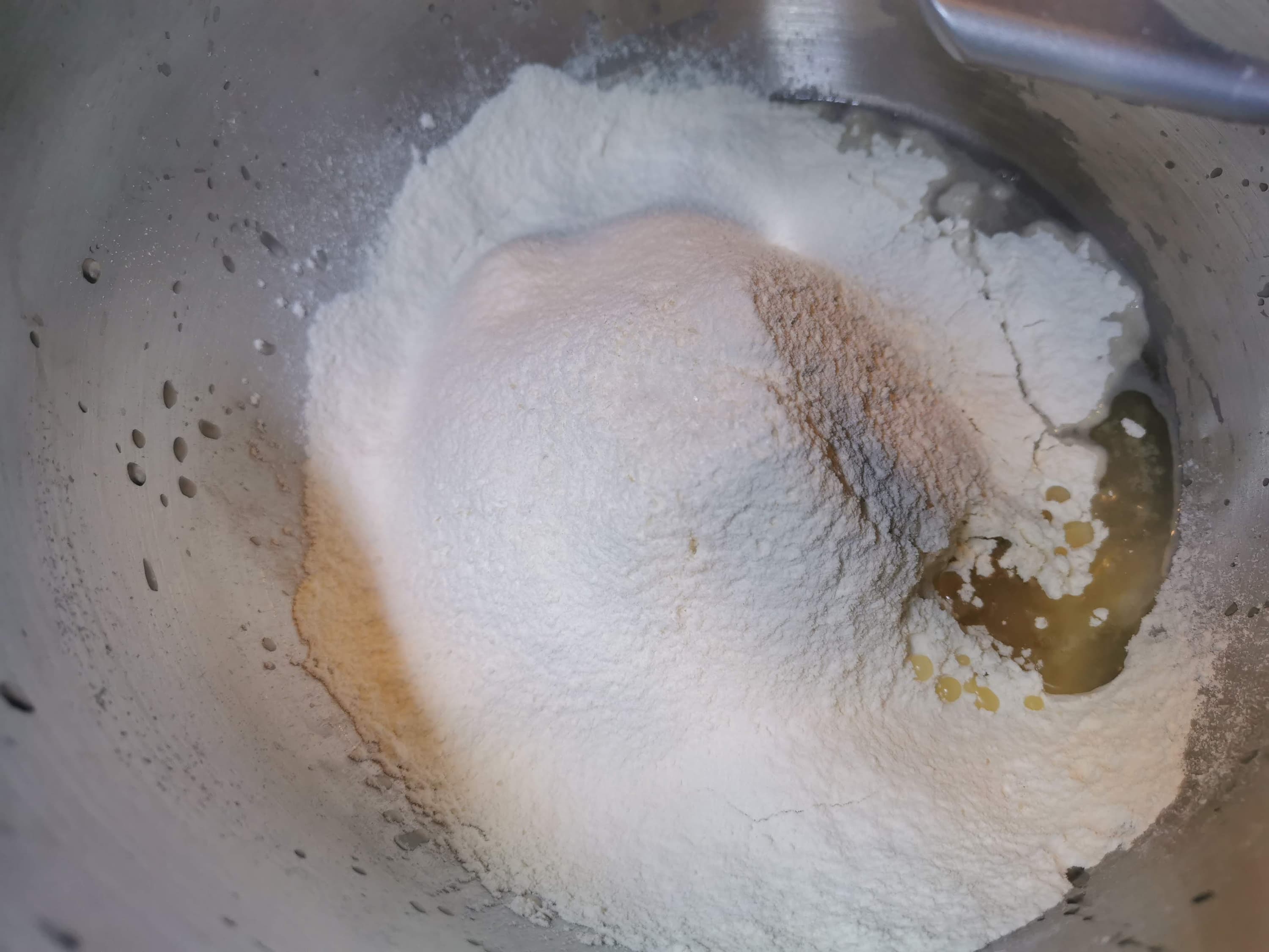 Далее мы просеяли муку, чтобы тесто было повоздушнее, добавили соль, масло и запустили работу прибора на 3-й скорости на 7 минут.
