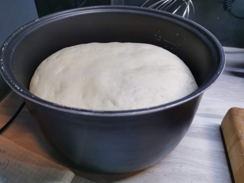 Спустя час наше тесто поднялось и было готово к дальнейшим манипуляциям.