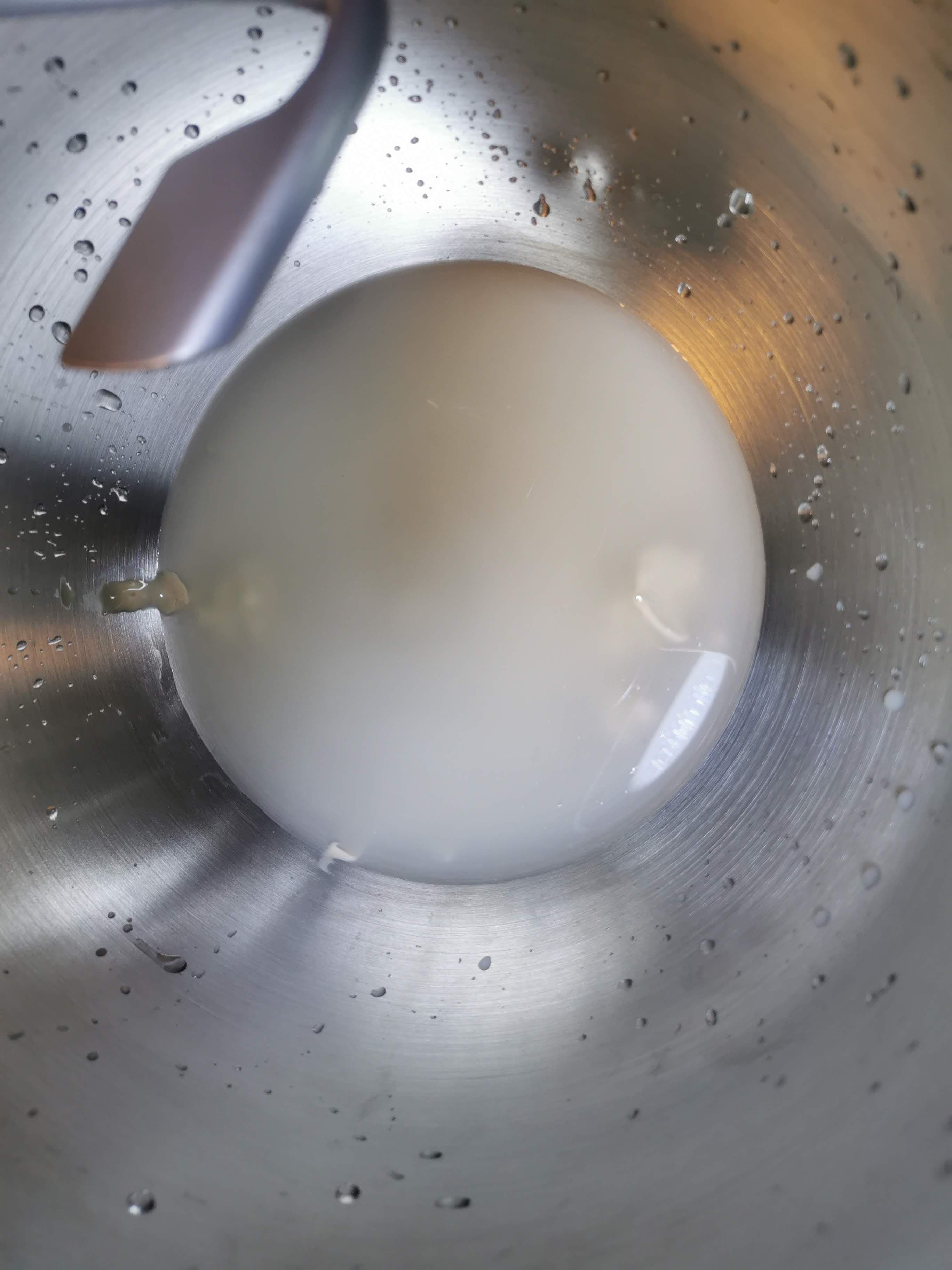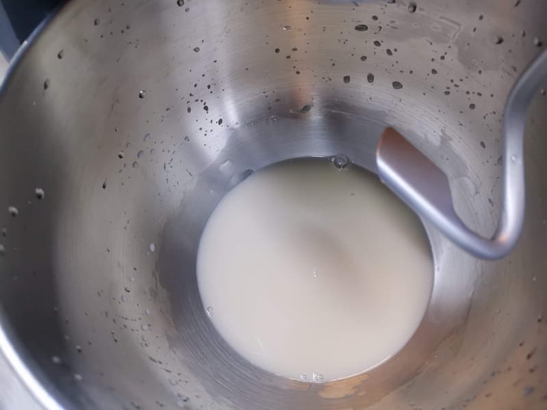 После чего активно всё перемешали, чтобы дрожжи полностью растворились в воде.