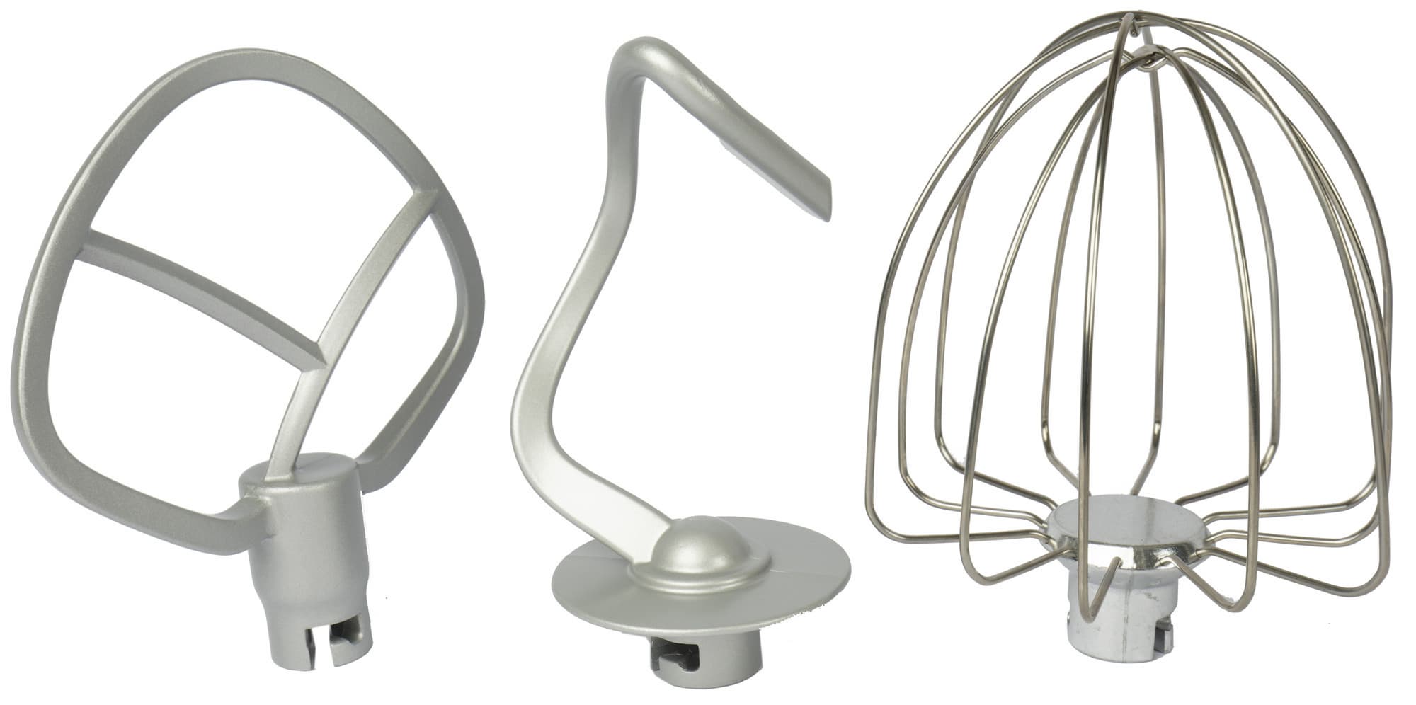 В комплекте идут три насадки: венчик для взбивания, крюк для замешивания теста, насадка для смешивания мягких продуктов. У венчика 6 стальных дуг, крюк и насадка для смешивания силуминовые.