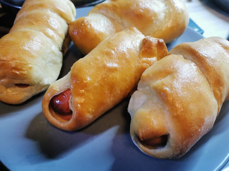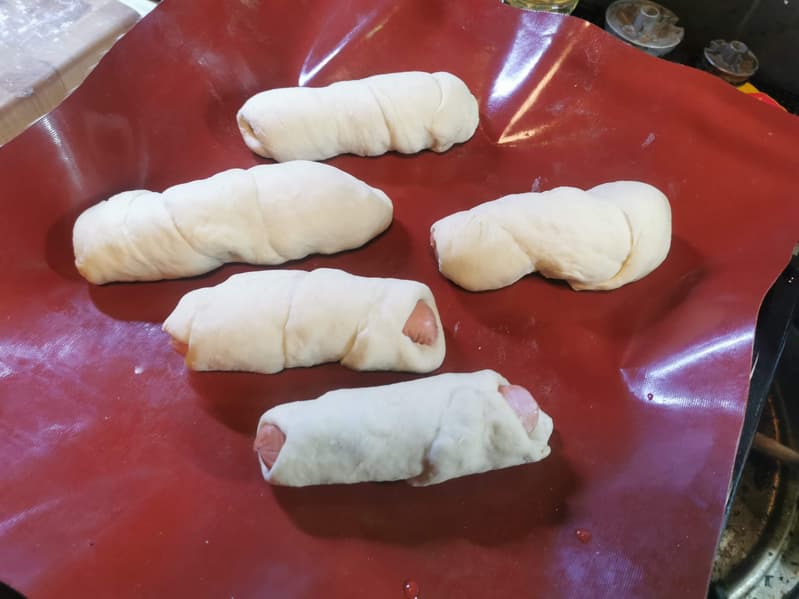 Сосискам в тесте понадобилось 20 минут в разогретой до 190 градусов духовке.