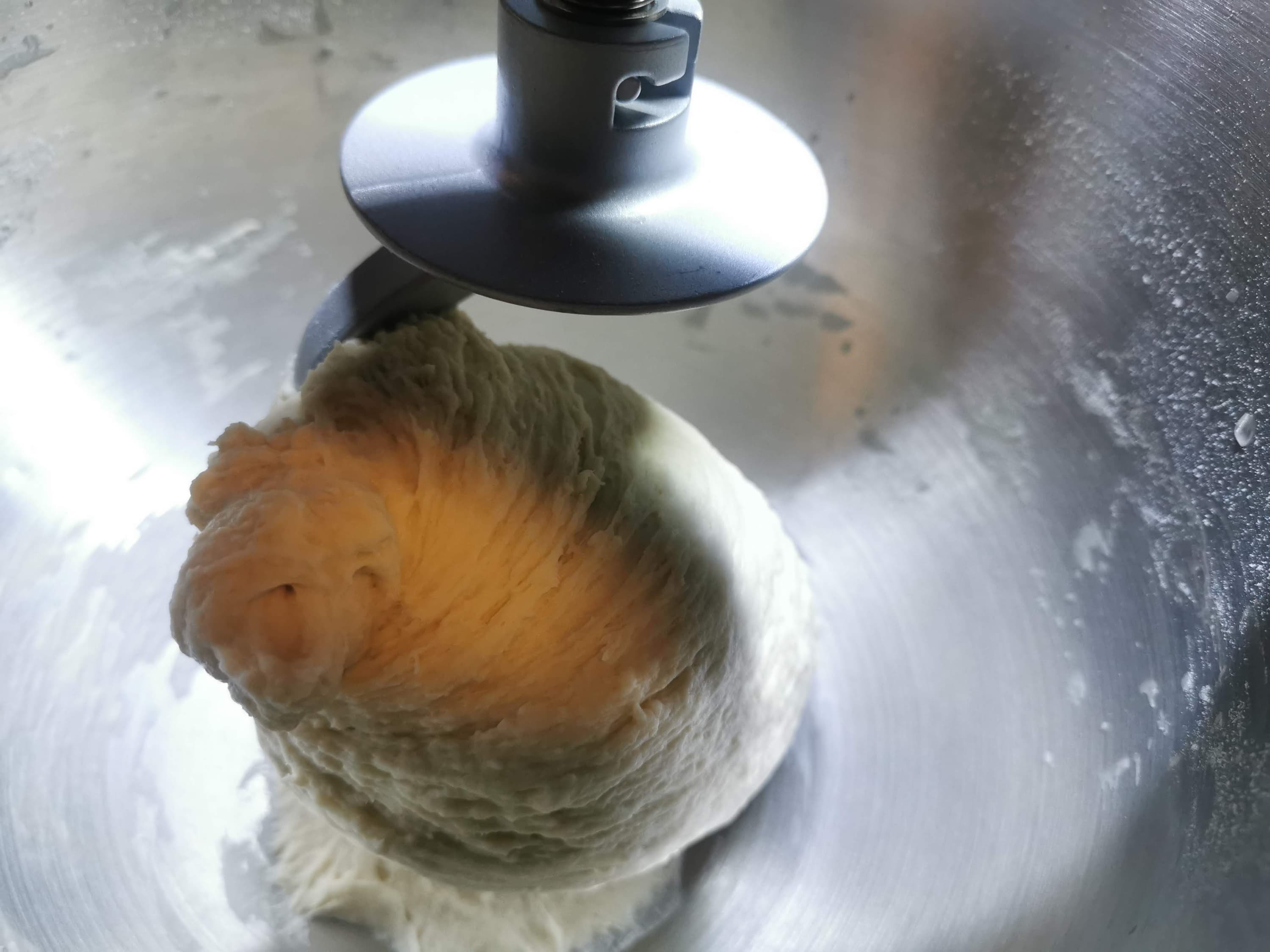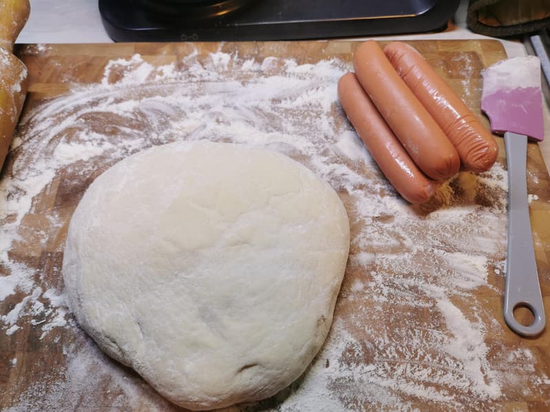 Для испытания насадки-крюка мы решили замешать тугое дрожжевое тесто для двух видов выпечки — сосисок в тесте и сладких булочек с яблоком.
