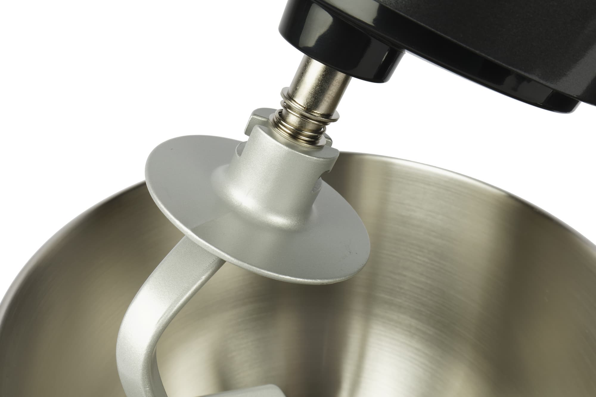 Во время тестирования нам ни на одном этапе работы не пришлось придерживать корпус миксера, даже при замешивании тугого дрожжевого теста, и причиной тому стали тяжелый и крепкий цельнометаллический корпус, продуманный механизм замешивания, при котором все вибрации распространяются только на верхнюю часть прибора, и отличные присоски на дне. При использовании каждой насадки осталось исключительно хорошее впечатление: дрожжевое и песочное тесто с помощью крюка или лопатки, густые и плотные взбитые сливки — всё это без какого-либо усилия и всего за 3-7 минут.