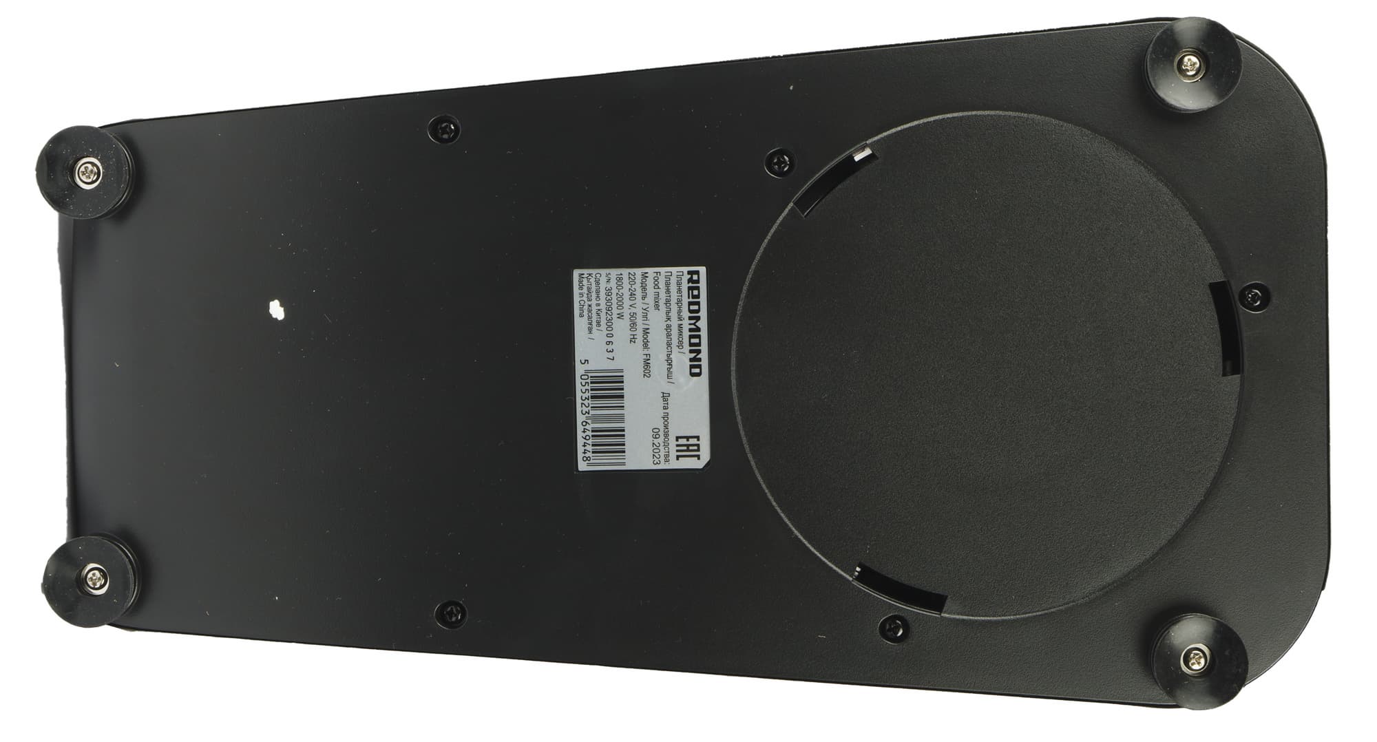 Redmond FM602 собирается точно так же, как и его коллеги-миксеры: чаша вставляется в гнездо и фиксируется поворотом по часовой стрелке. Насадки и крышка закрепляются тем же способом.