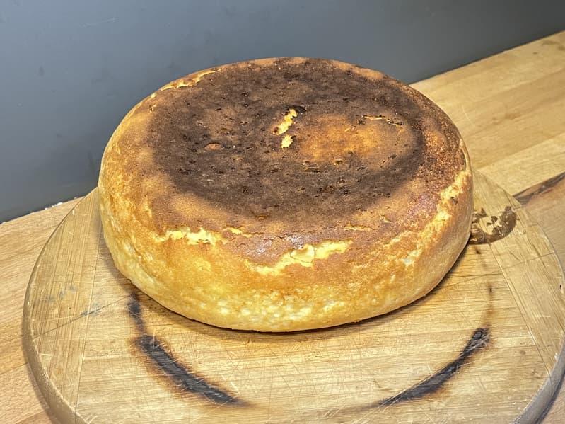 Запеканка немного подгорела снизу, но получилось очень красивой, румяной по бокам и напомнила по виду домашний чизкейк.