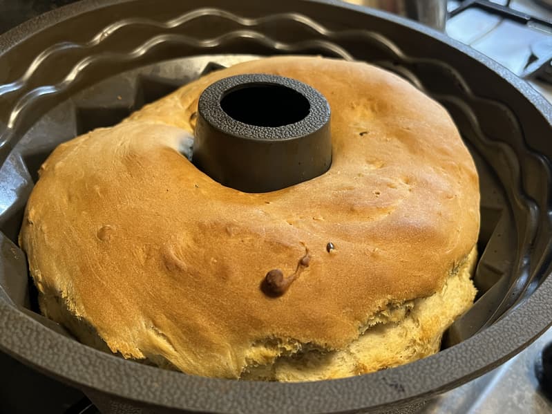 За отведенное время хлеб как раз приготовился. Он значительно поднялся, разорвался по краям, подрумянился.