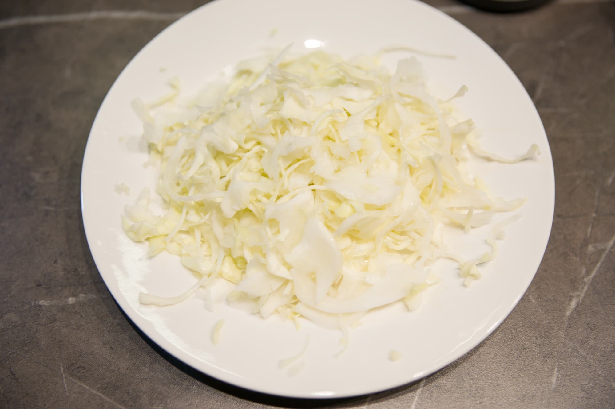 Шинковку сначала опробовали на капусте. В целом неплохо, но стоит учесть, что из-за неравномерной толщины капустного листа в общей массе всё равно будут попадаться крупные куски и стружка не получится такой ровной, как в случае с нарезкой ножом. Так у нас и вышло.