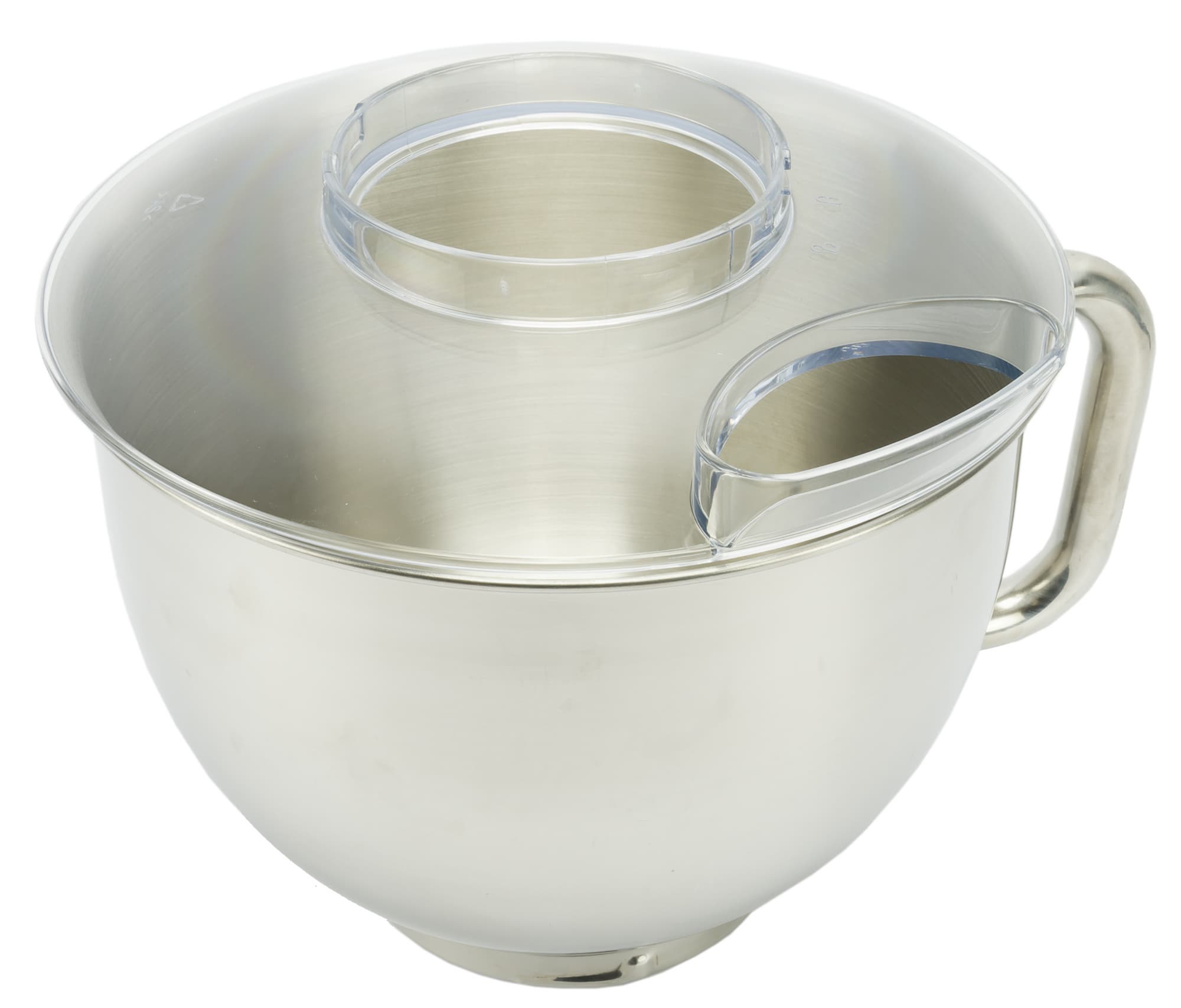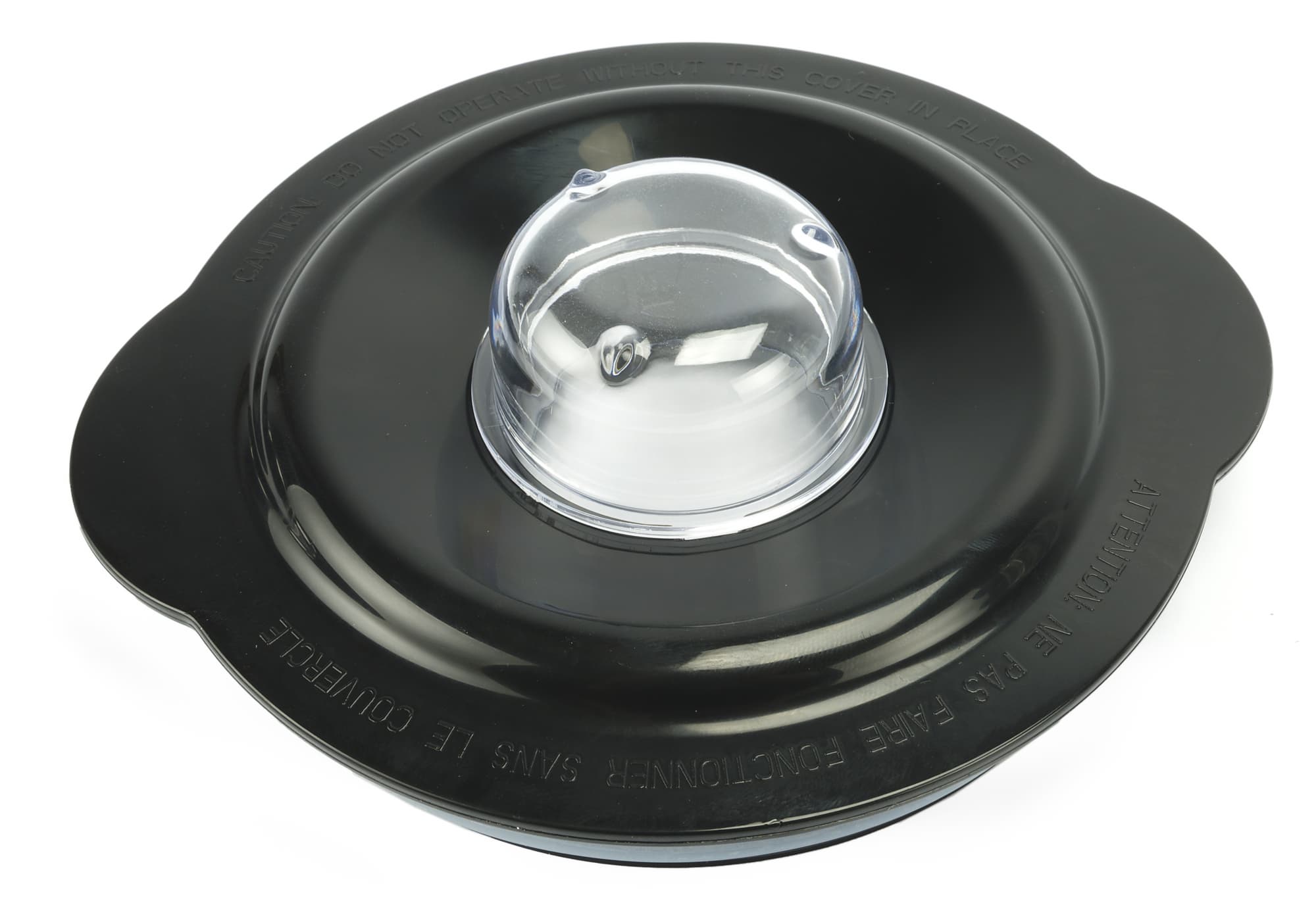 К чаше прилагается прозрачная пластиковая крышка с отверстием для подачи продуктов. Она крепится поворотом на выступе приводного вала. Сама чаша закрепляется тоже поворотом, но уже на подошве корпуса, в своеобразном персональном ложе.