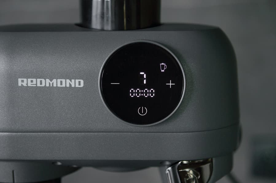 Redmond FM615 управляется при помощи сенсорного дисплея. После подключения устройства к сети на нем появляются три кнопки: «Пуск» (она же «Подтверждение выбора» и «Отмена»), «−» и «+» для выбора скорости и установки таймера.