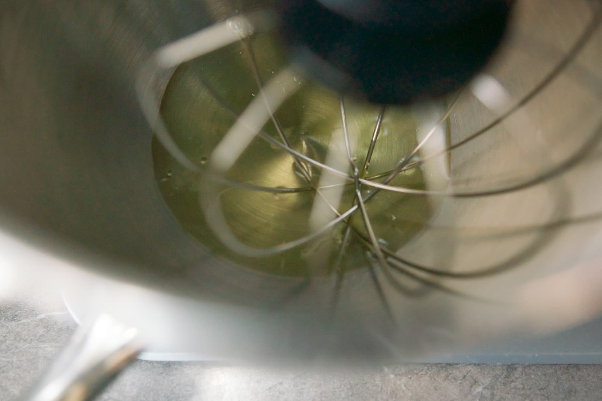 В этом тесте мы решили посмотреть, как устройство справится с минимальным объемом продуктов для взбивания. На дно чаши вылили 75 мл белков и включили третью скорость.